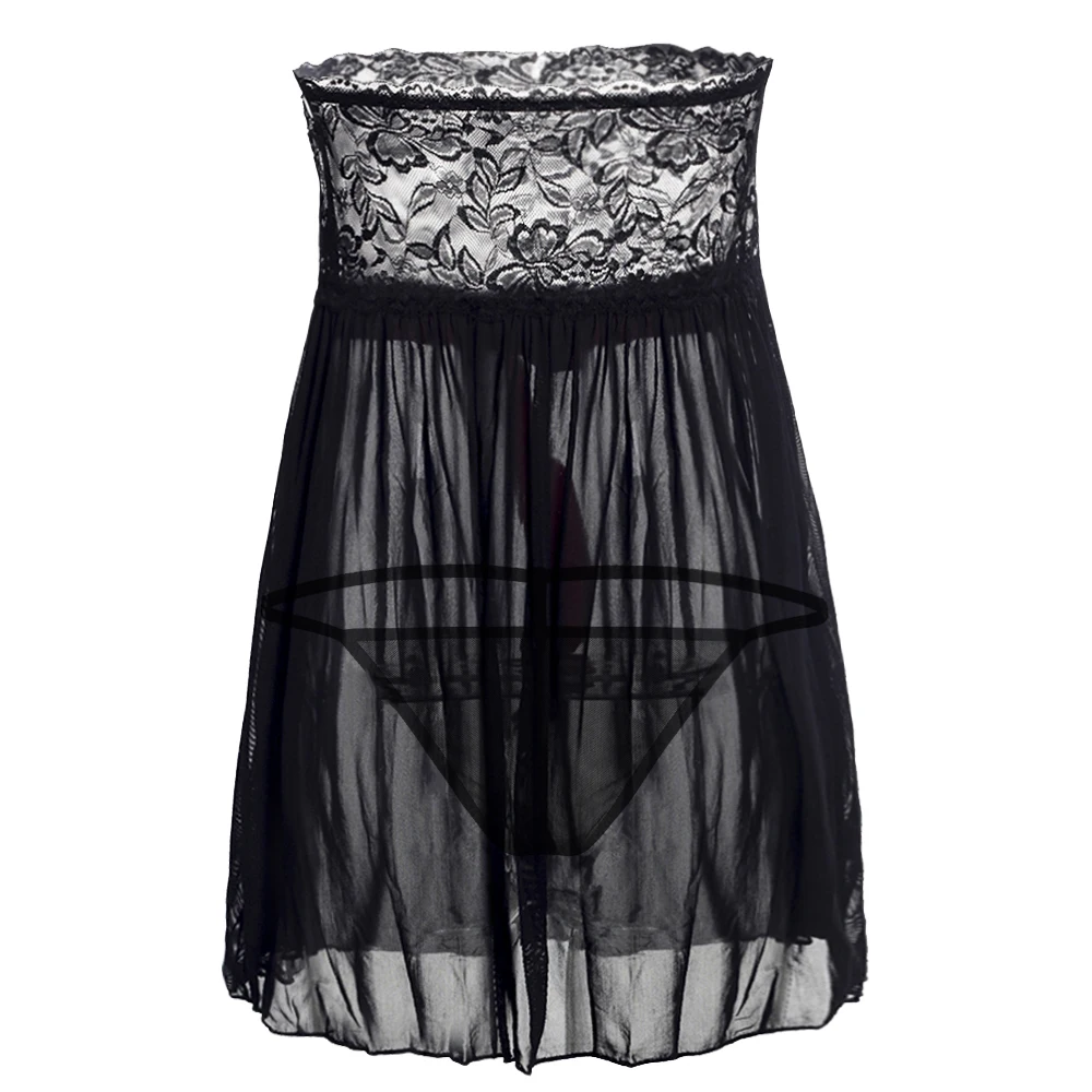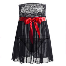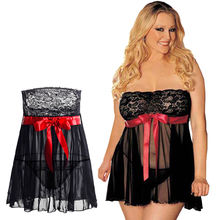 Plus Size 4XL 5XL 6XL Women Sexy Strapless Black Lace Lingerie Hot Tempation Sexy Nigtdress Nightgown Nightwear Intimate Slips