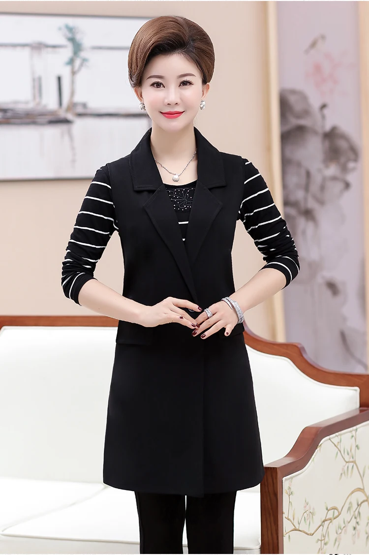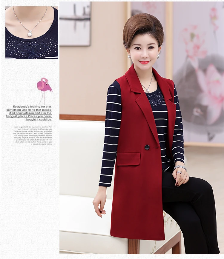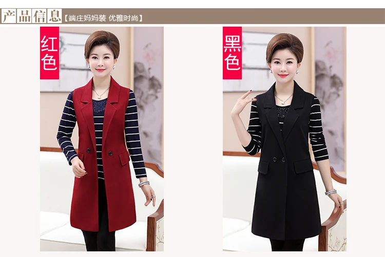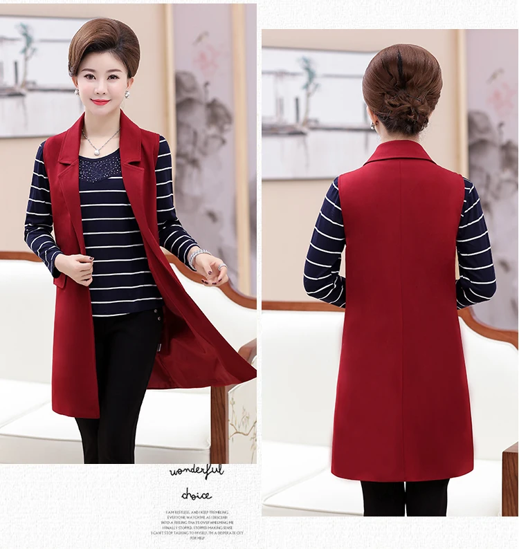 Plus Size 5XL Elegant Fashion Mom’s Vest Long Red Women’s Sleeveless Jacket Cotton Women’s Vest Feminine Coat Long Waistcoat
