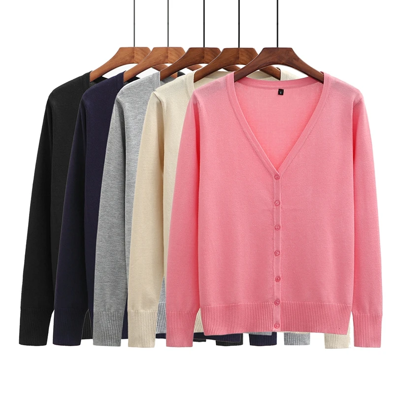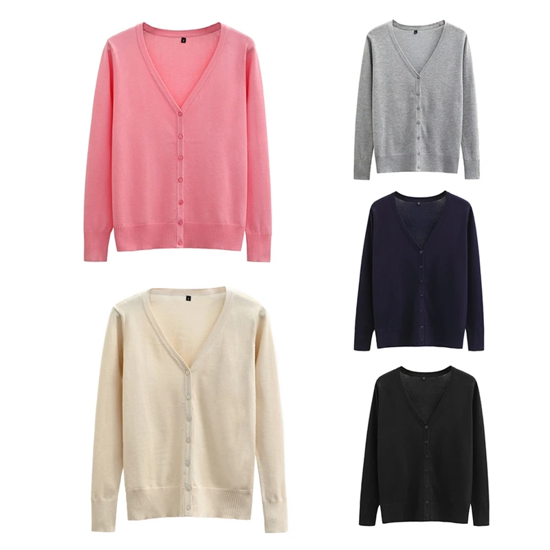 Plus Size 5XL Women Autumn Cardigan Sweater Coat V-Neck Long Sleeve Knitting Cardigan Outerwear Dark Blue Black Gray Pink Aprico