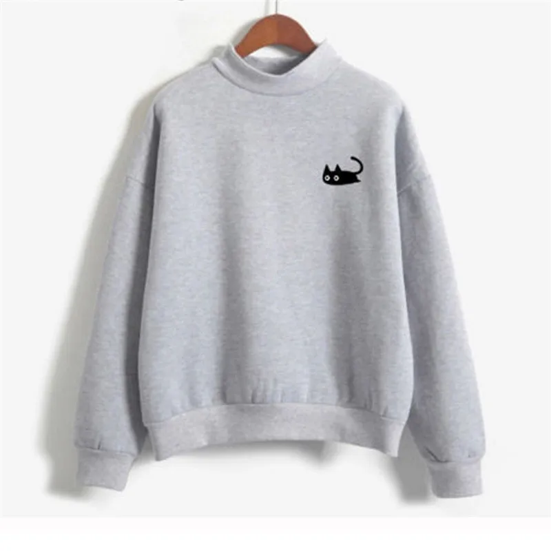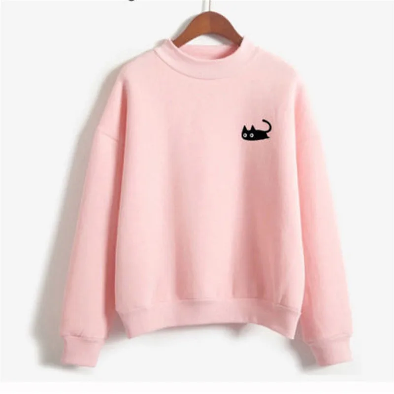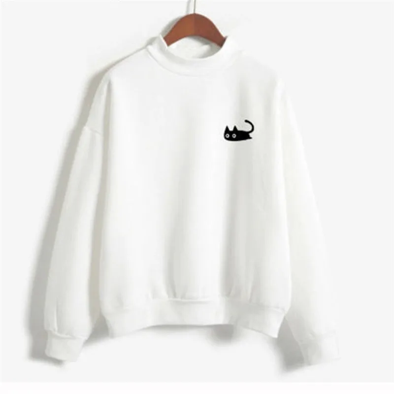 Plus Size Couple Hoodie Fashion Women Sweatshirts Casual Sweet Cat Print Tops Pullovers Female Hoodies Loose Solid Clothing