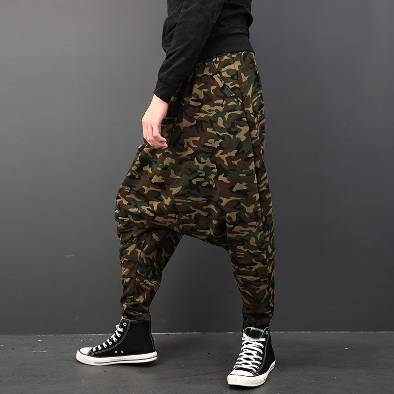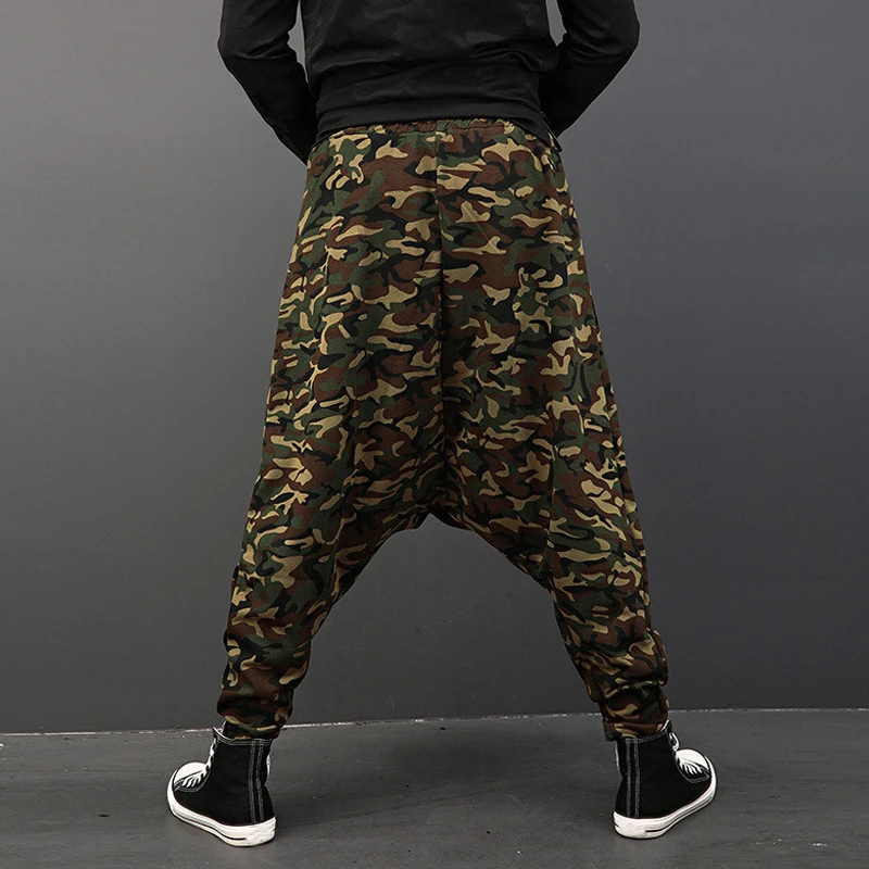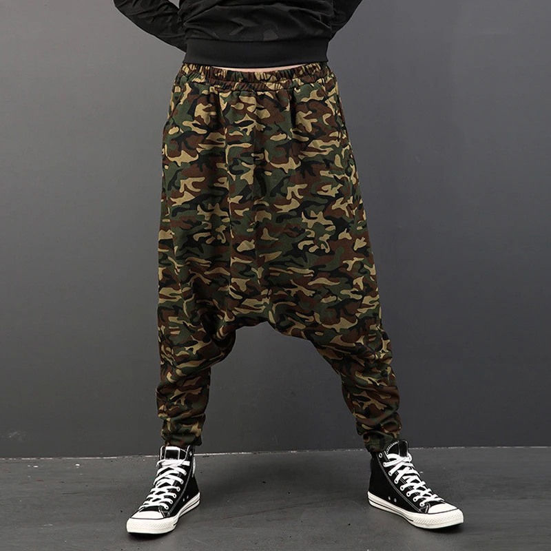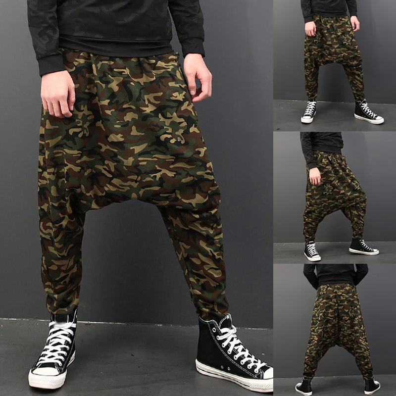 Plus Size Mens Pants Fashion Drop Crotch Harem Pants Male Baggy Hip-hop Dance Joggers Camouflage Print Casual Trousers Men 2018