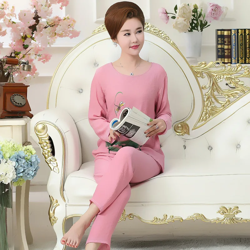 Plus Size XL-4XL Womens Nightwear 2pc Tops Pants Sleep Pajamas Sets Sleepwear Spring Autumn Cotton Nightgown Robe Clothes