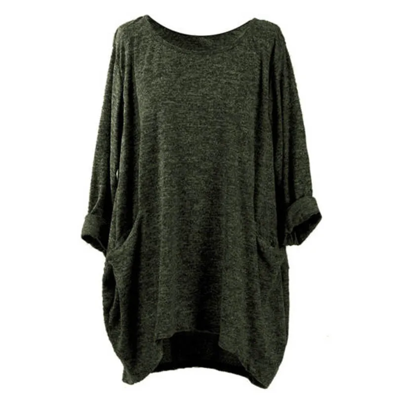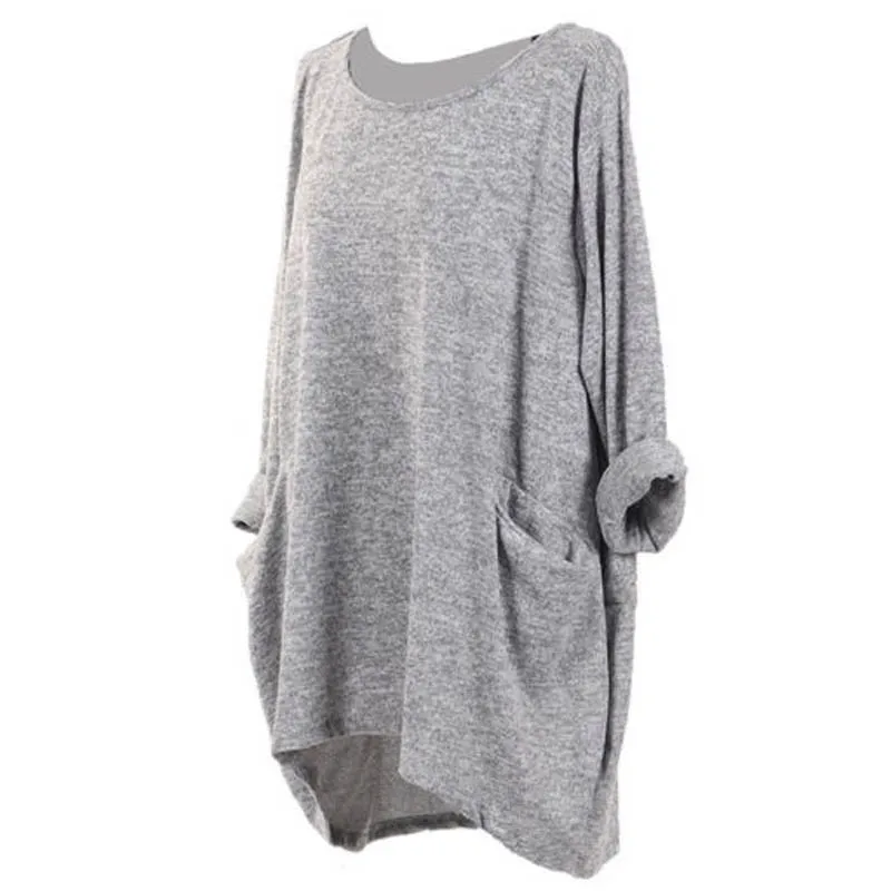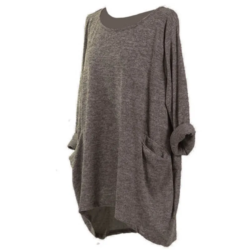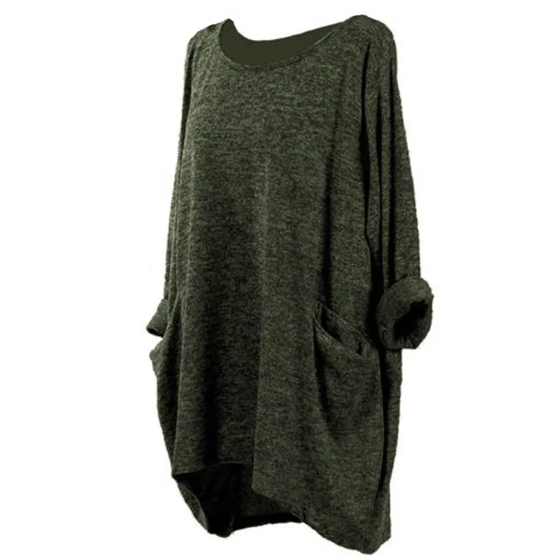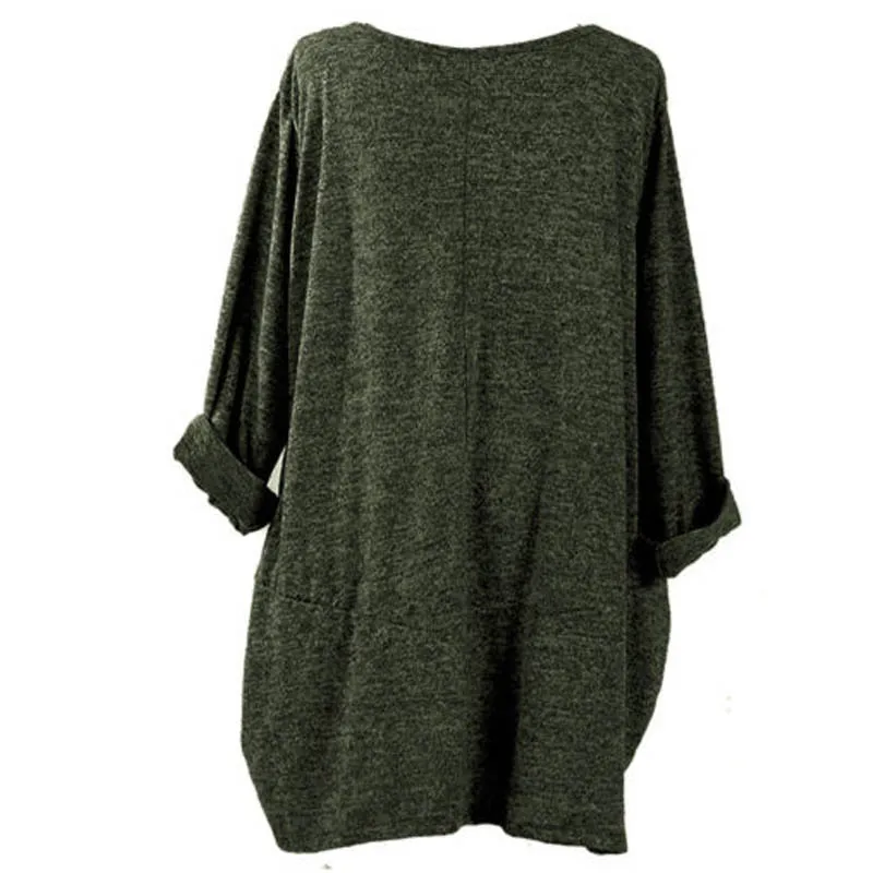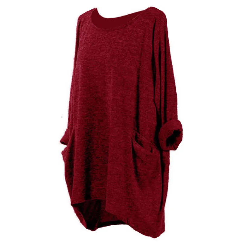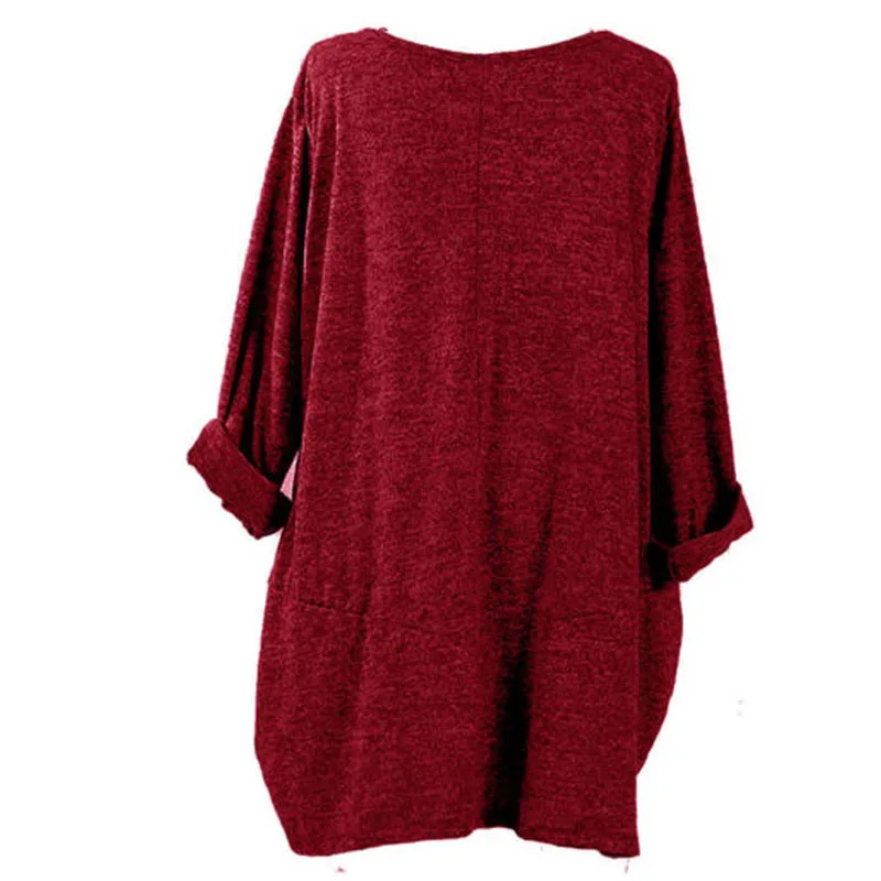 Plus Size ZANZEA Women Autumn O Neck Long Sleeve Brief Shirt Vintage Casual Pullover Baggy Pockets Solid Blouse Loose Top Blusas