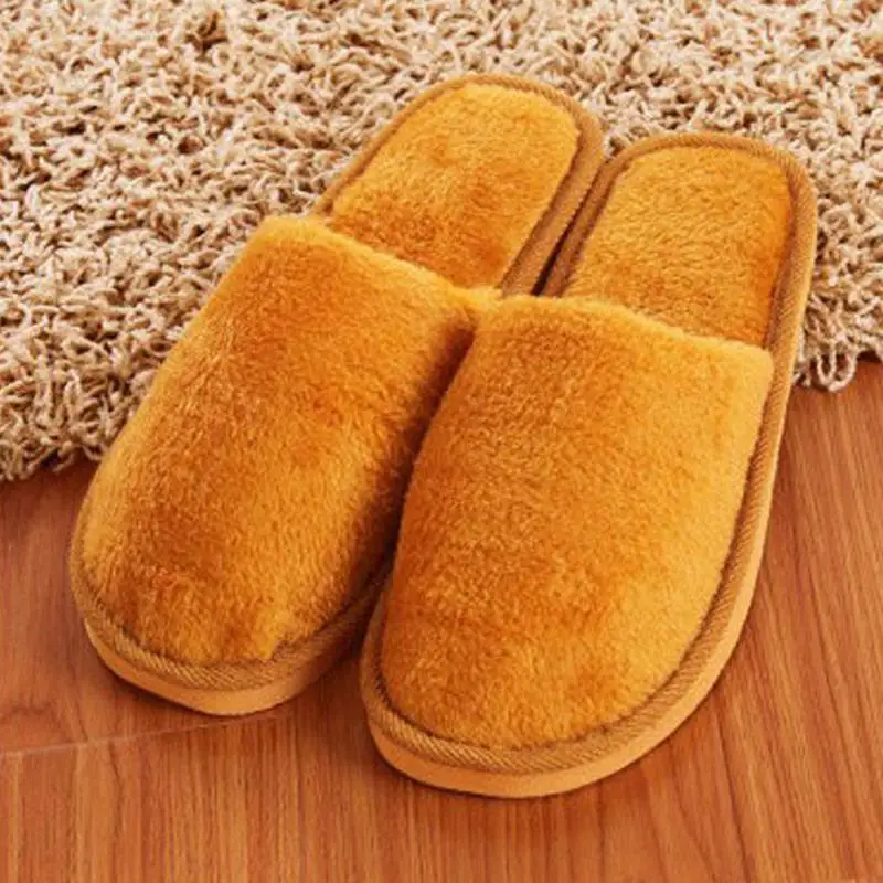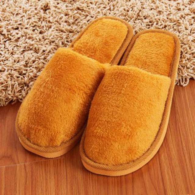 Plush Winter Home Slippers Men Indoor Bedroom Loves Couple Shoes Home Shoes Soft Warm Slippers Pink Pure color