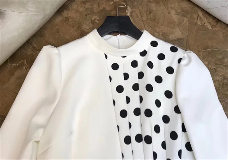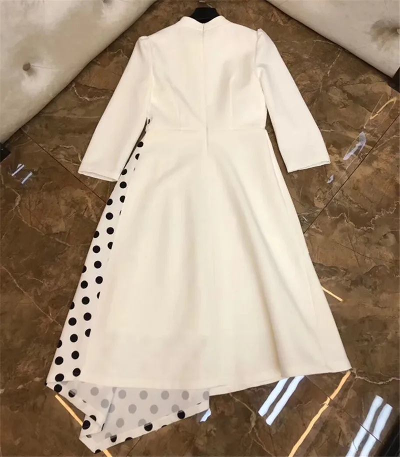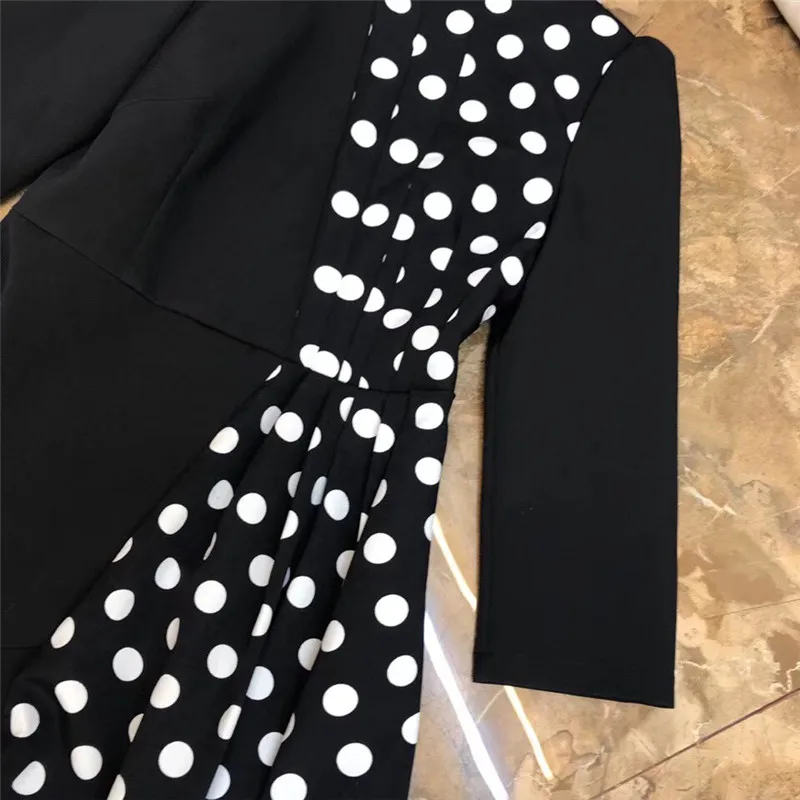 Polka Dots Patchwork Long Dress Women Autumn Half Sleeve High Waist Dress Ladies Dresses Elegant
