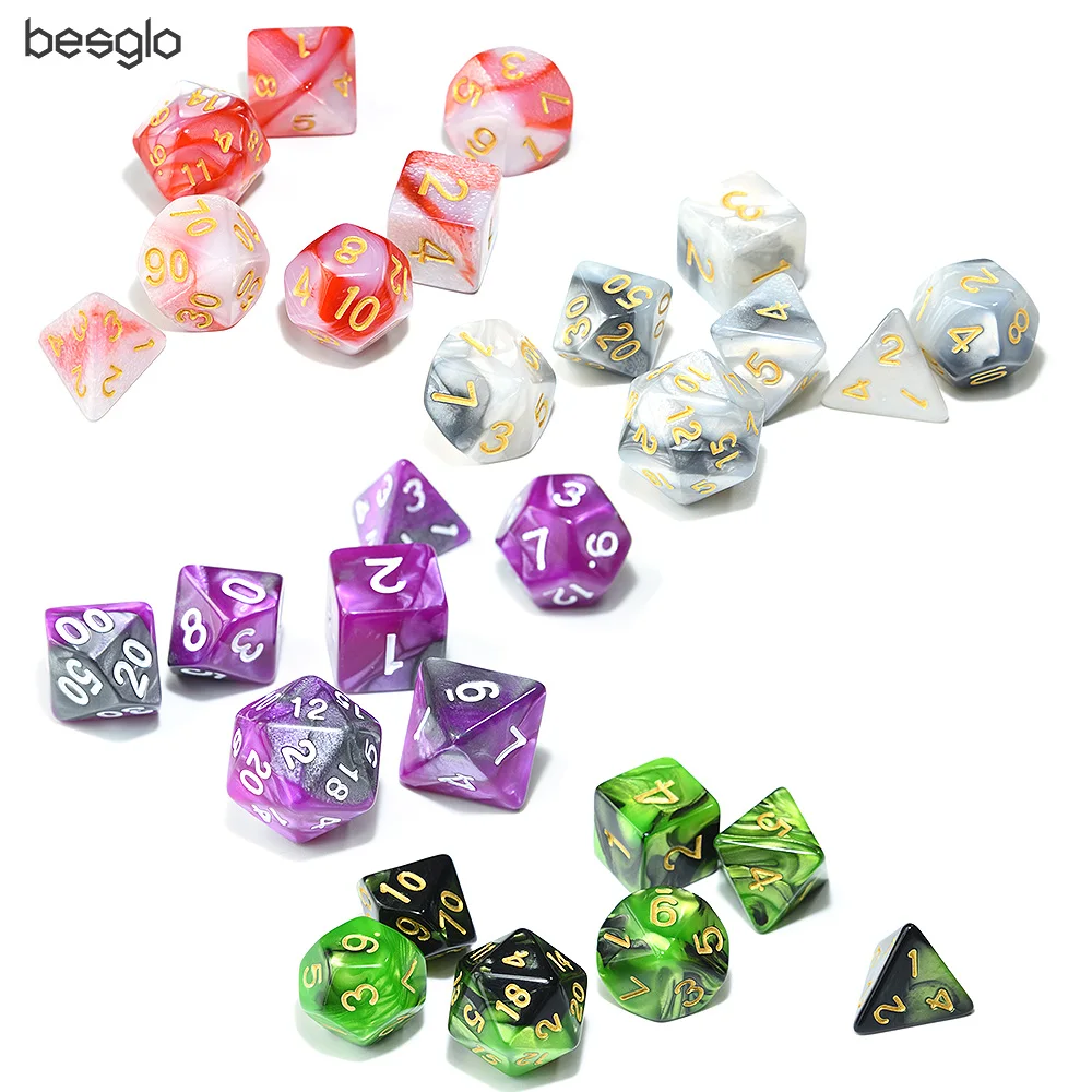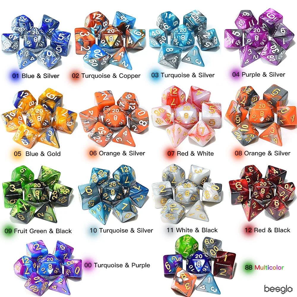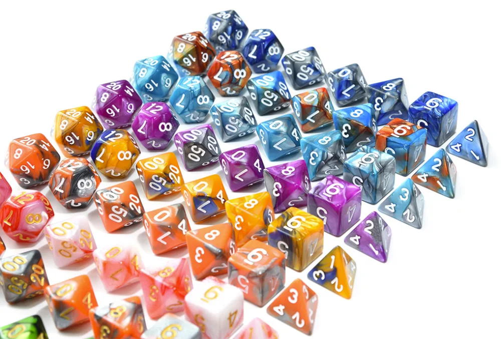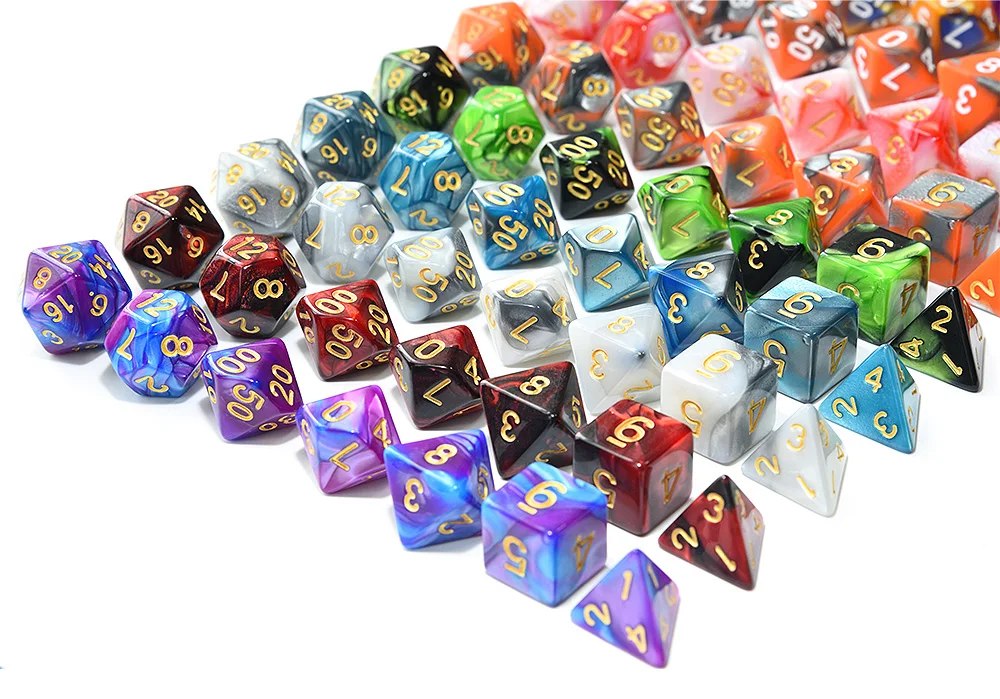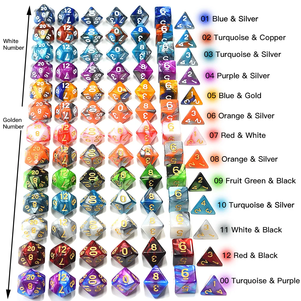Polyhedral DnD Mixed Color Dice 7pcs/Set for RPG Dungeons and Dragons Board Games D4,D6,D8,D10,D%,D12,D20