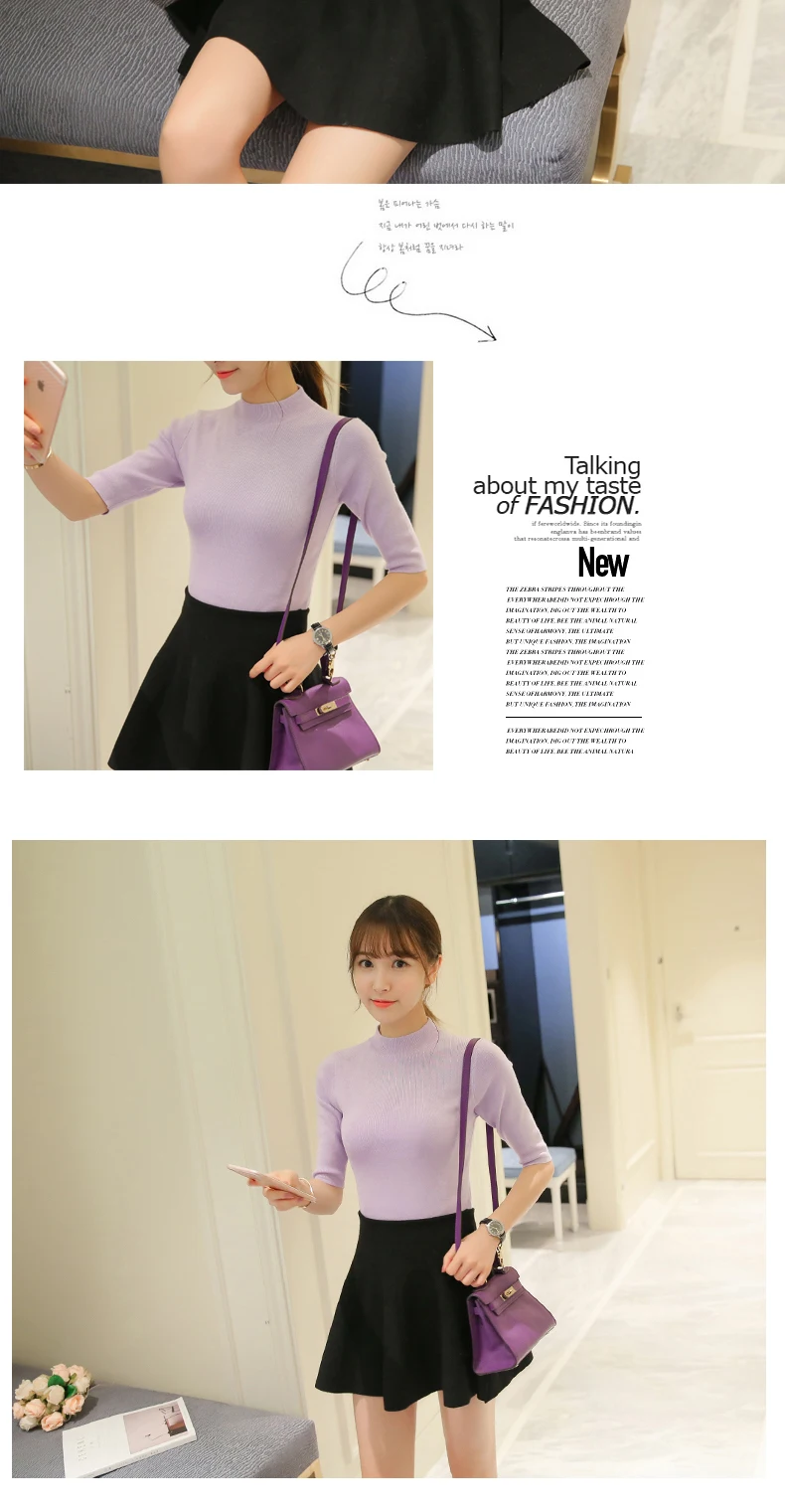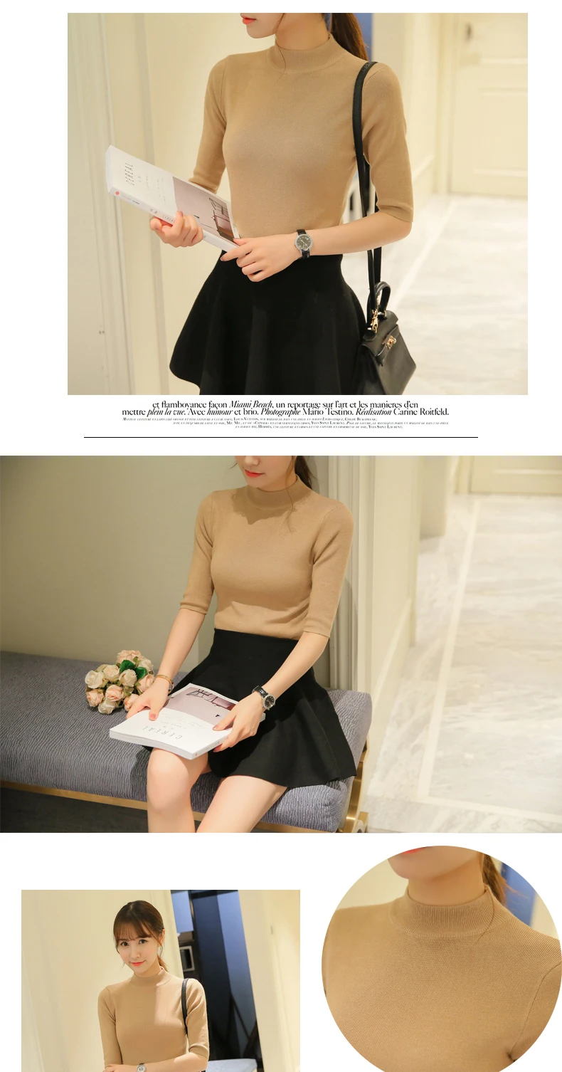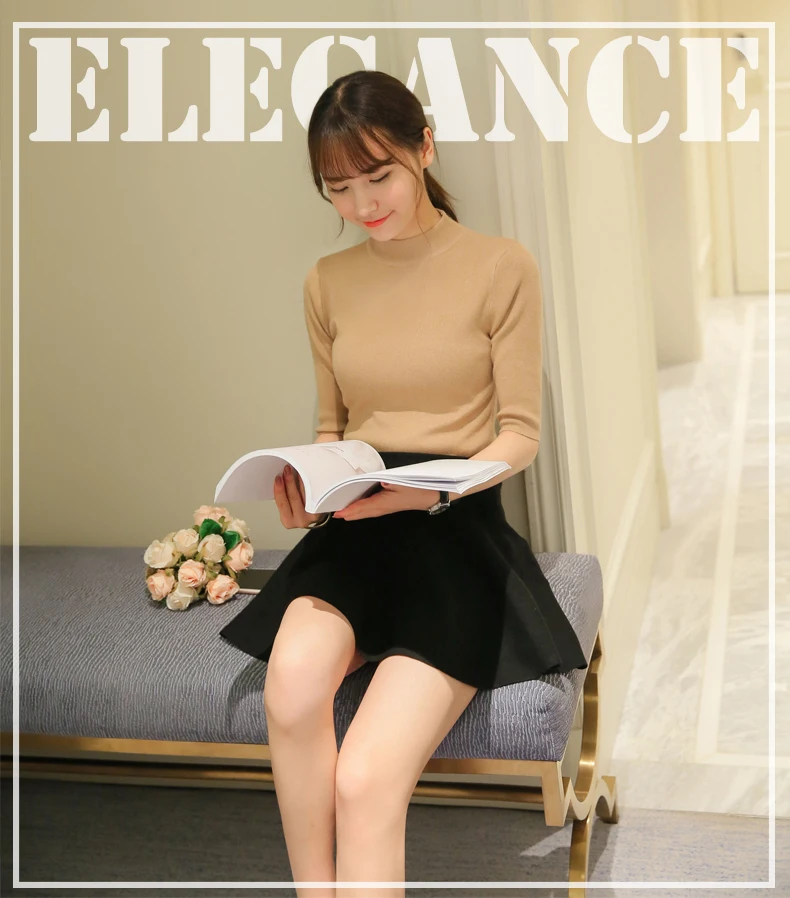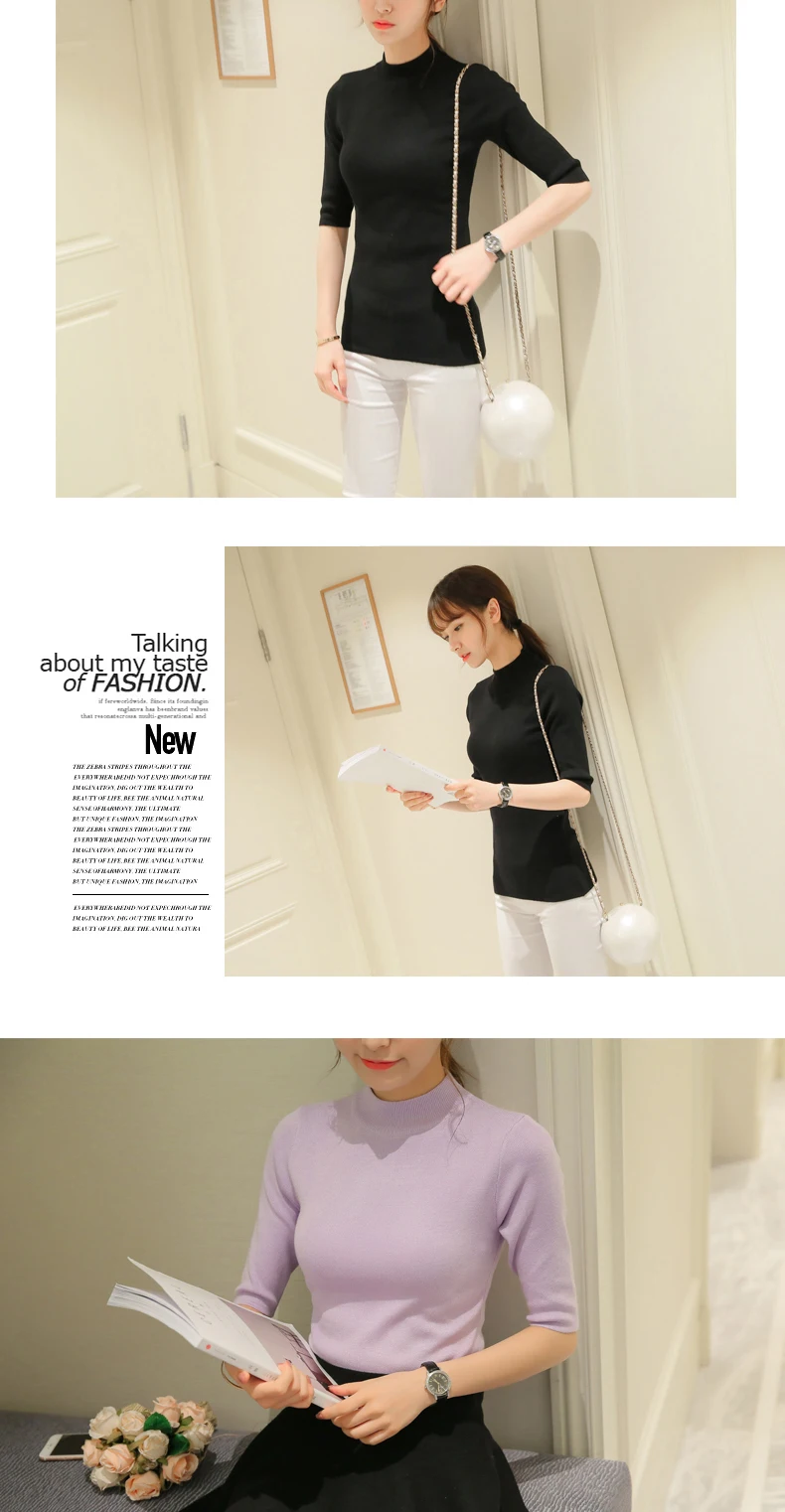 Poncho Time-limited Three Quarter Women Sweater 2018 New Spring Korean Sleeve Shirt Collar Solid Elastic Sweater Five Girl