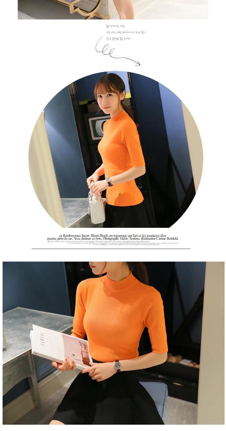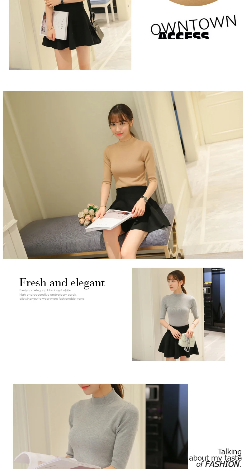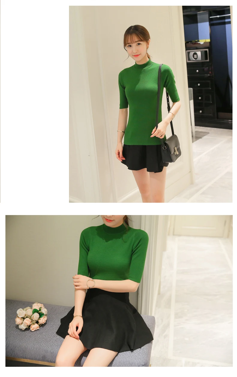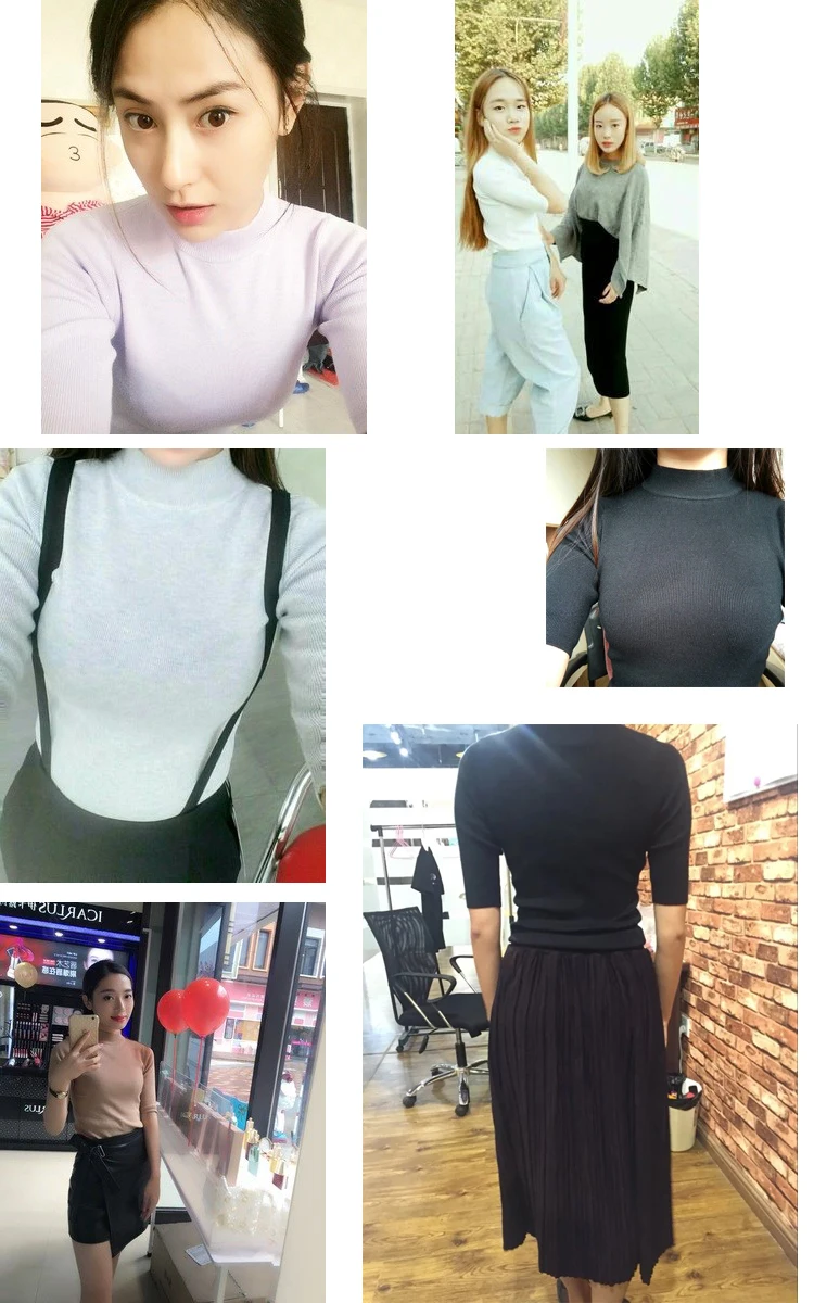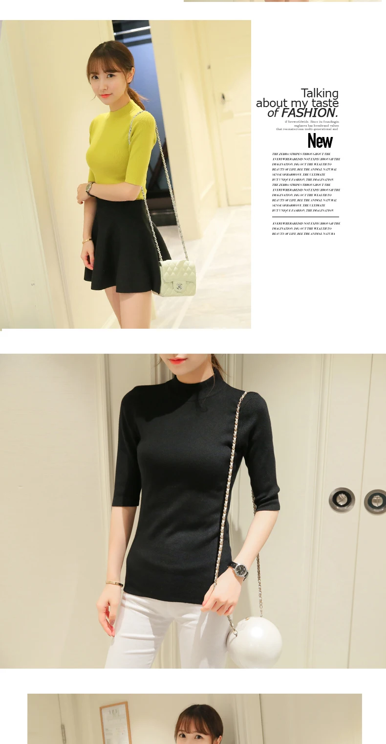 Poncho Time-limited Three Quarter Women Sweater 2018 New Spring Korean Sleeve Shirt Collar Solid Elastic Sweater Five Girl