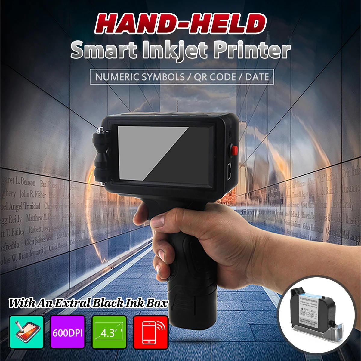 Portable 600PI Handheld Intelligent Bluetooth WIFI Date Coder Inkjet Printer LED To.uch-screenfor Ink Coding Machine