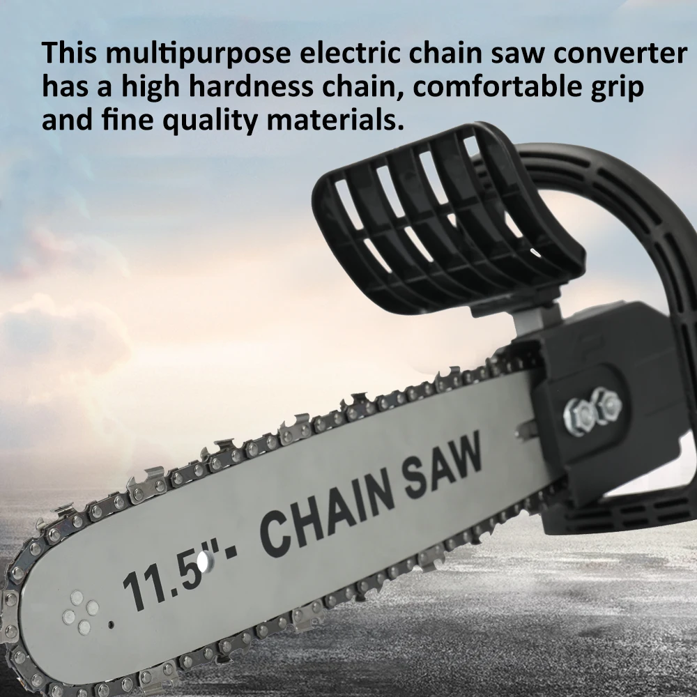 This multipurpose electric chain saw converter has a high hardness chain, comfortable grip and fine quality materials. It is suitable for home and industrial use, as long as the diameter of polisher shaft is within 10mm can be installed.