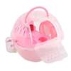 It is a non-toxic plastic material hamster cage, so that you can be reassure to put your hamster into this cage. You can enjoy watching your lovely hamster playing in this cage. It is small and portable cage, you can carry it to wherever you want to go. Pretty convenient for you to travel outside or go on a picnic with your friends.