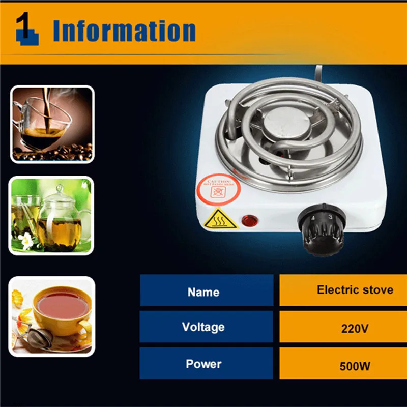 Portable Electric Stove Hot Plate 500W 220V EU Single Burner Warmer Coffee Tea Heater Cooktop Thicken Panel Portable Durable