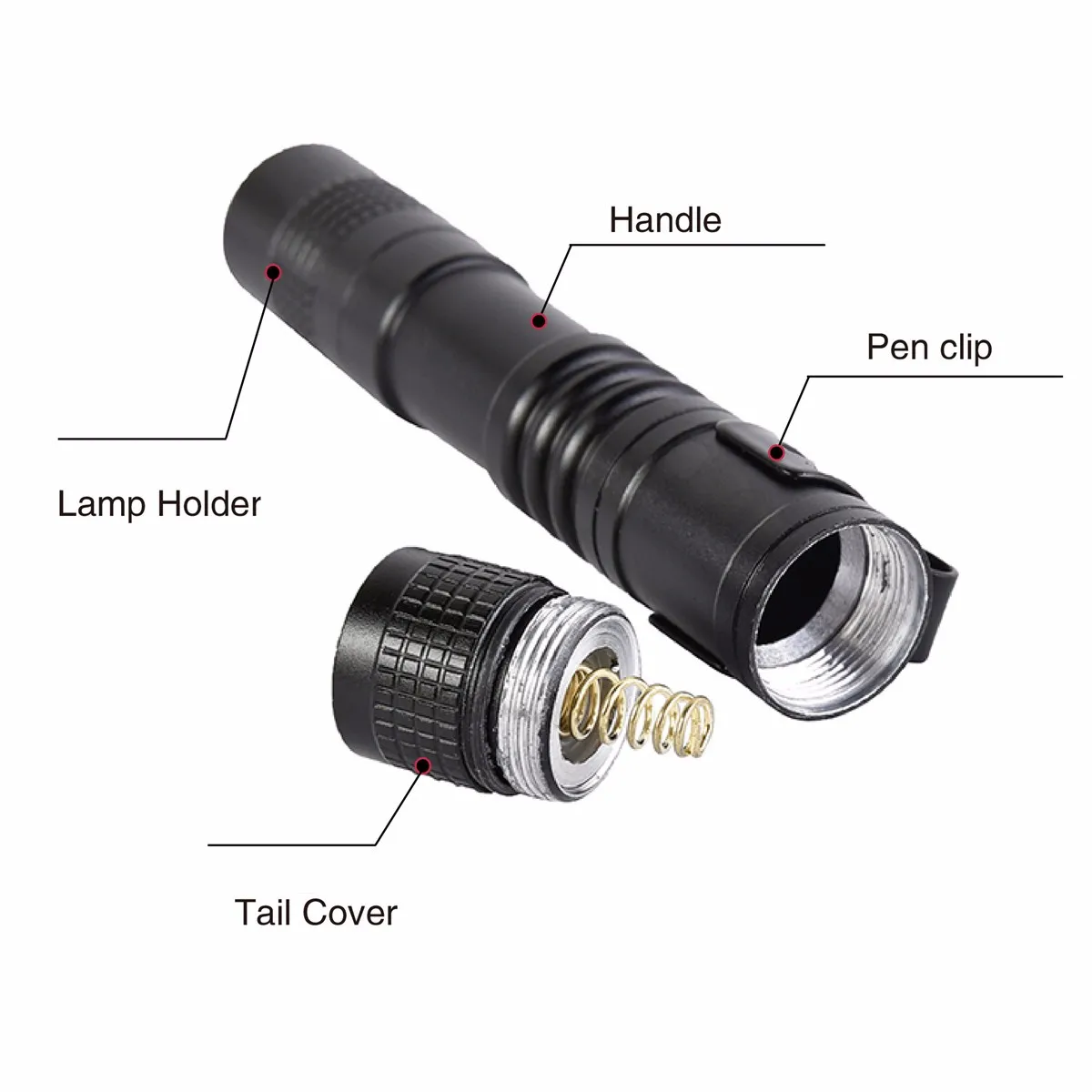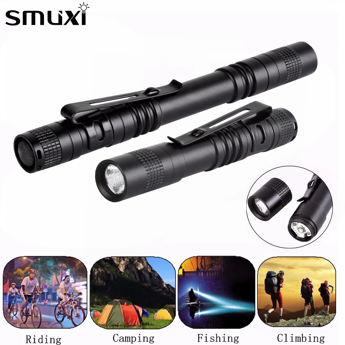 Portable Handy LED 2000lm Q5 Flashlight Torch Mini Pocke t Penlight With Clip Used AAA Battery For Camping Fishing Flashlight