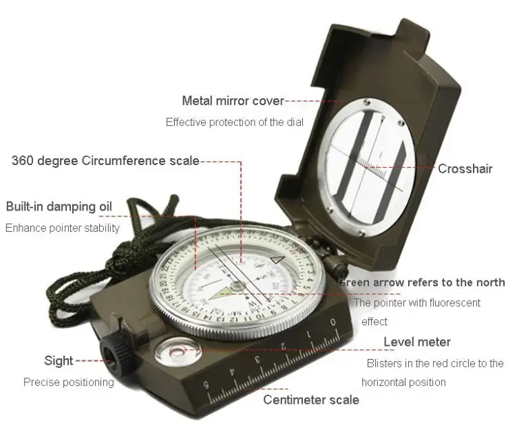 Portable Military Army Compass Lensatic Prismatic Compass Multifunctional Outdoor Camping Tools with Fluorescent Light
