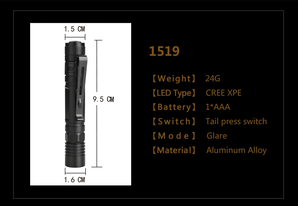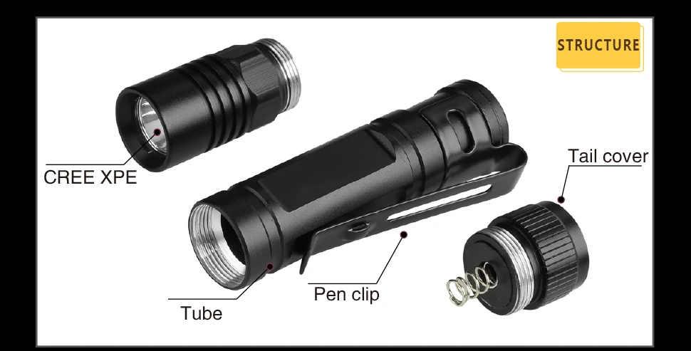 Portable Mini Pen Light LED Flashlight Torch XPE-R3 Flash Light 300LM Hunting Camping Lamp By 2xAAA battery