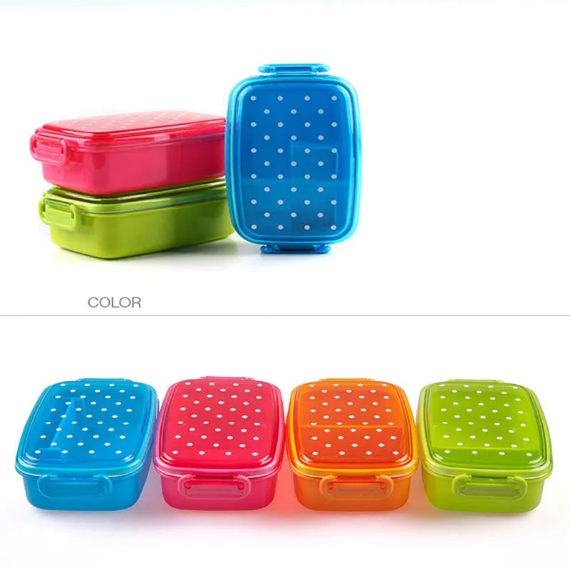 Portable Polka Dot Lunch Food Container Boxes Kids Fruit Snack Microwave Bento Lunch Bowl
