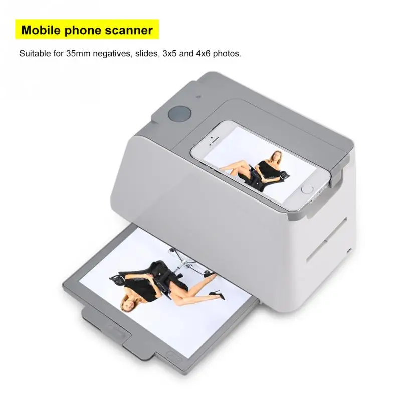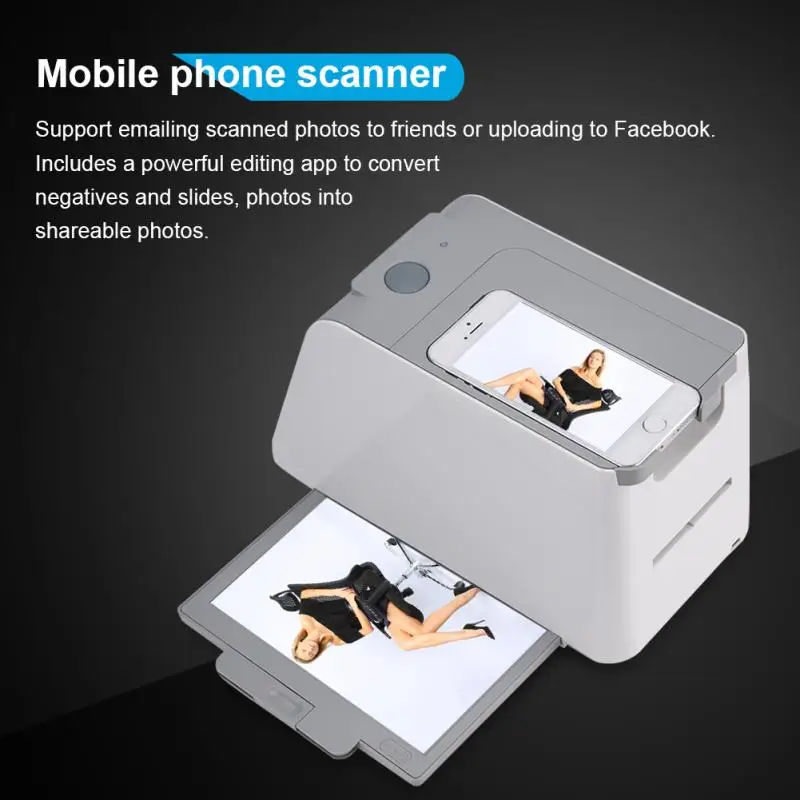 - It’s easy to use, simply load the photo into the smartphone photo and the negative scanner photo tray, place the photo under the photo booth, and take a photo with the smartphone camera.