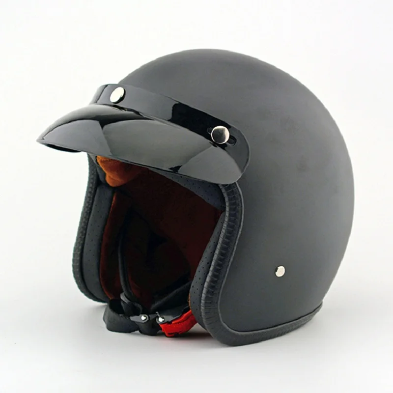 POSSBAY Open Face Motorcycle Half Helmet Black ABS Leather Moto Casque Retro Man Motorbike Motocross Casco for Harley Helmets