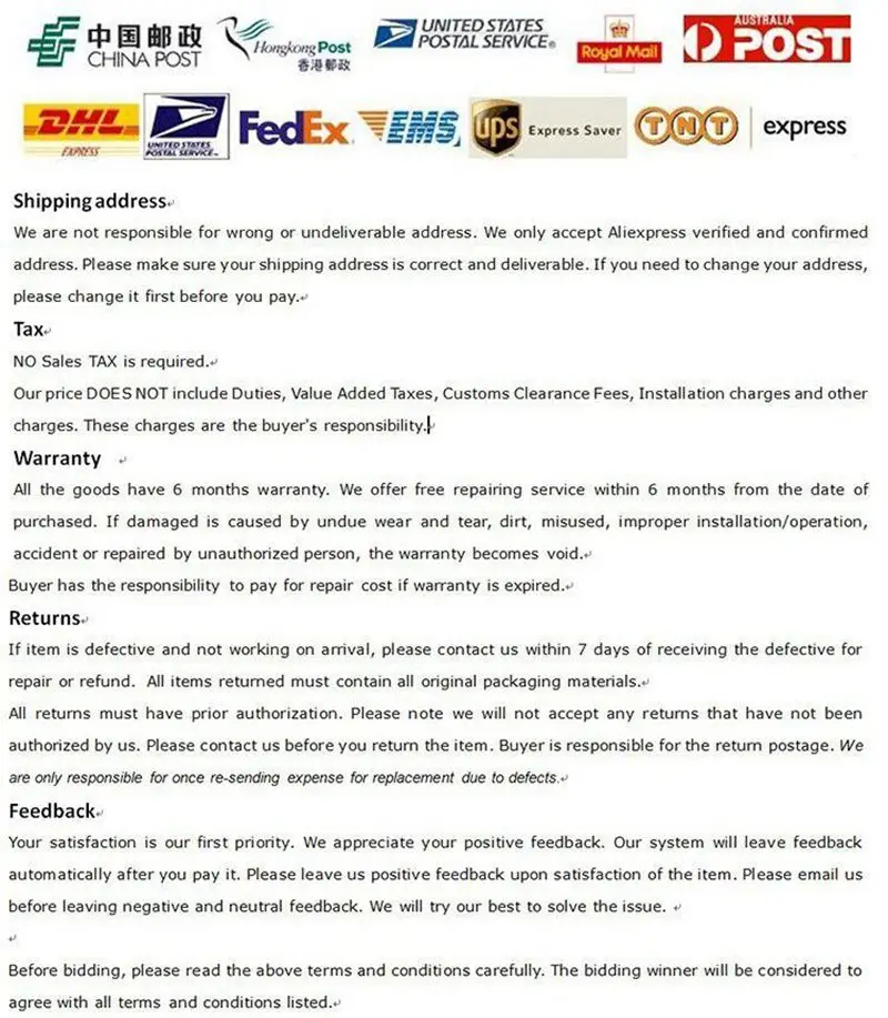 We are not responsible for any custom fees once the items have shipped. By purchasing our products, you consent that one or more packages may be shipped to you and may get custom fees when they arrive in your country.