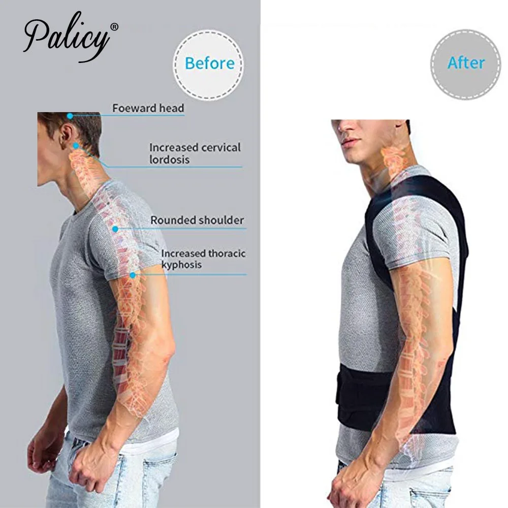Palicy Posture Corrector Back Support Belt Men Orthopedic Posture Corset Lumbar Spine Brace Back Straightener Round Shoulder Waistcoat