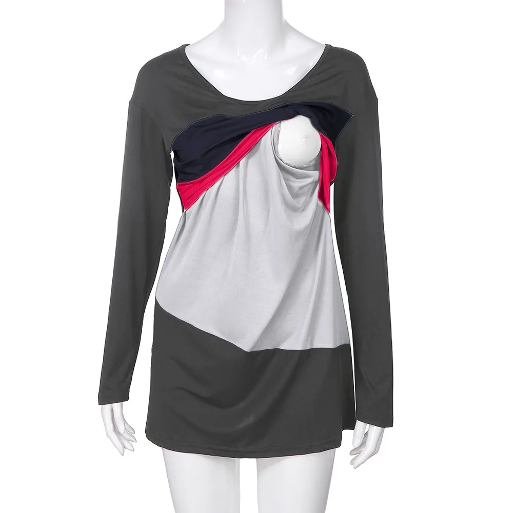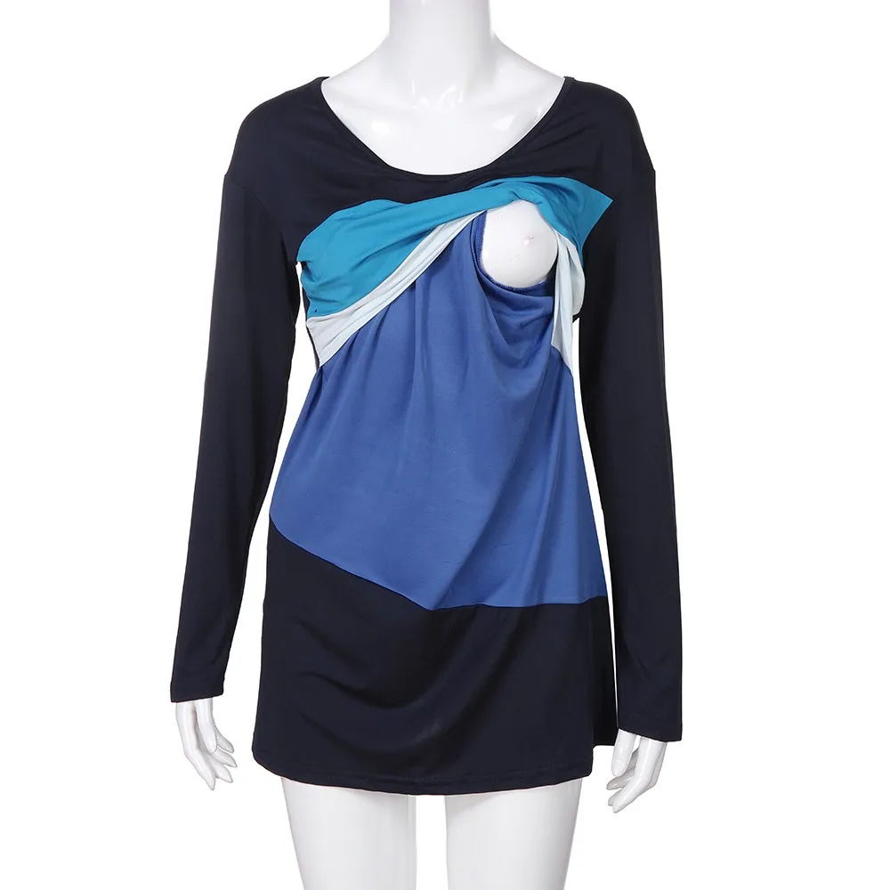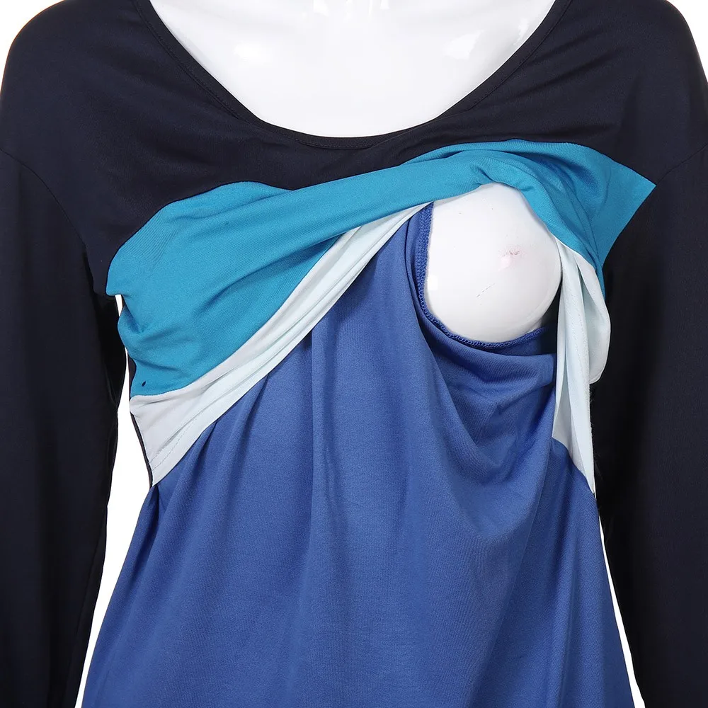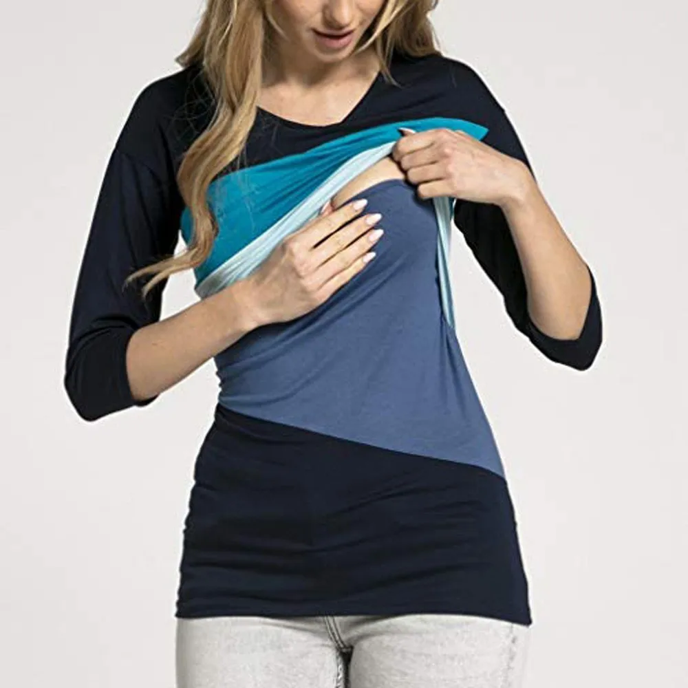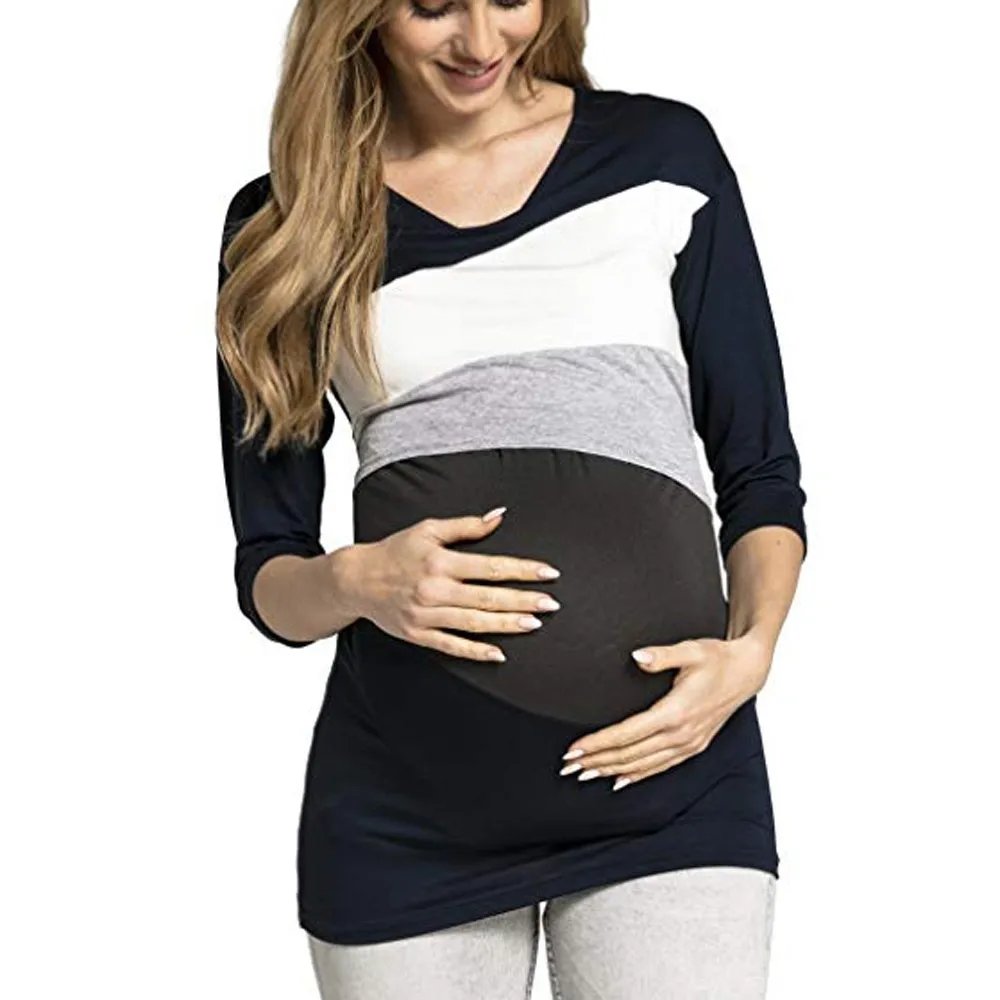 Women’s Maternity Nursing Wrap Top Color Block Double Layer Blouse T Shirt