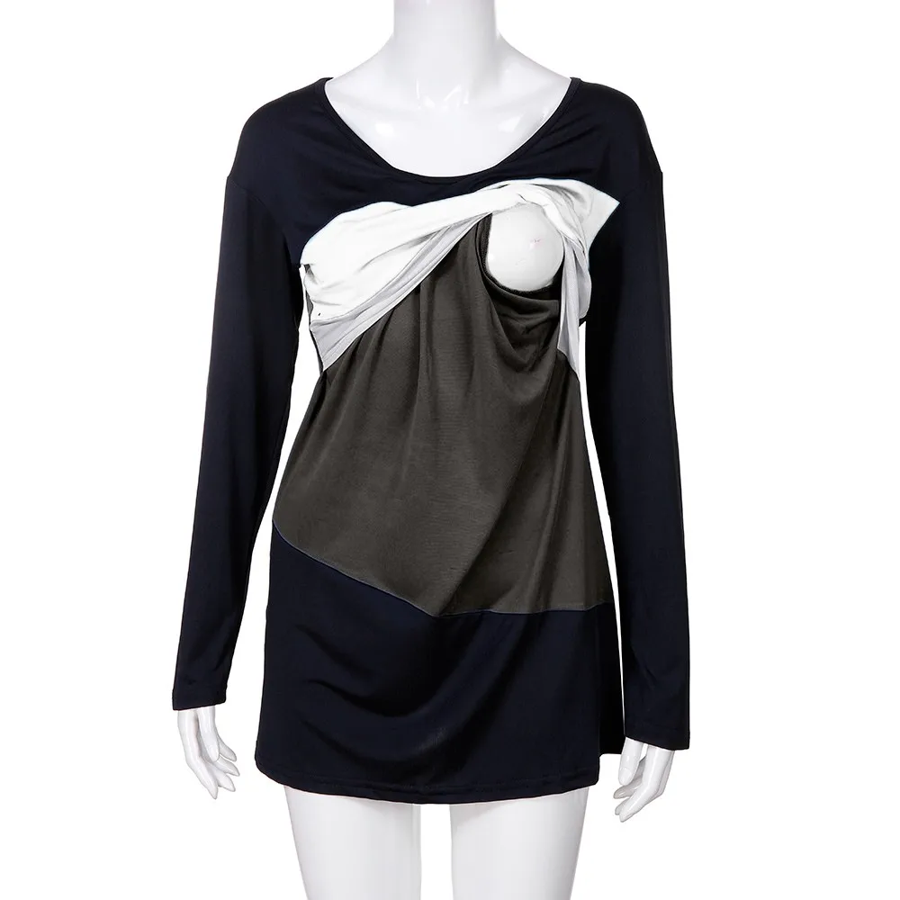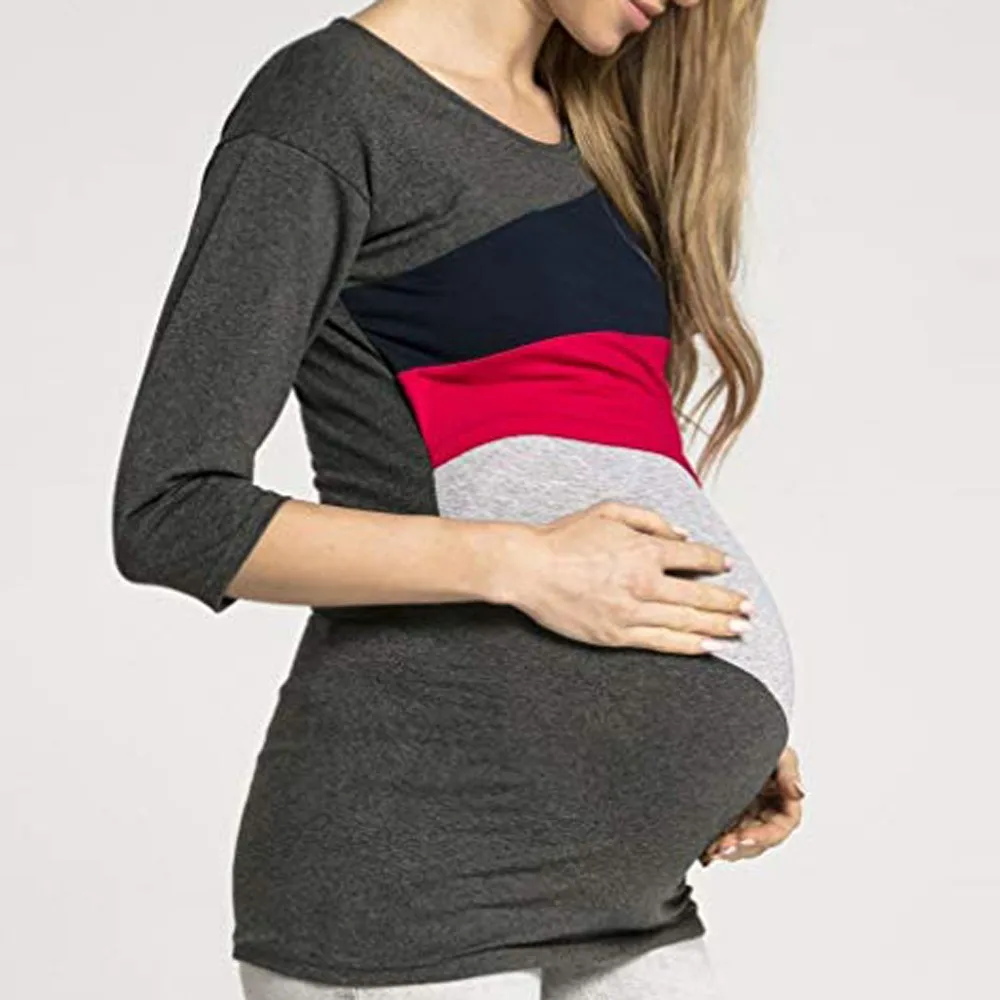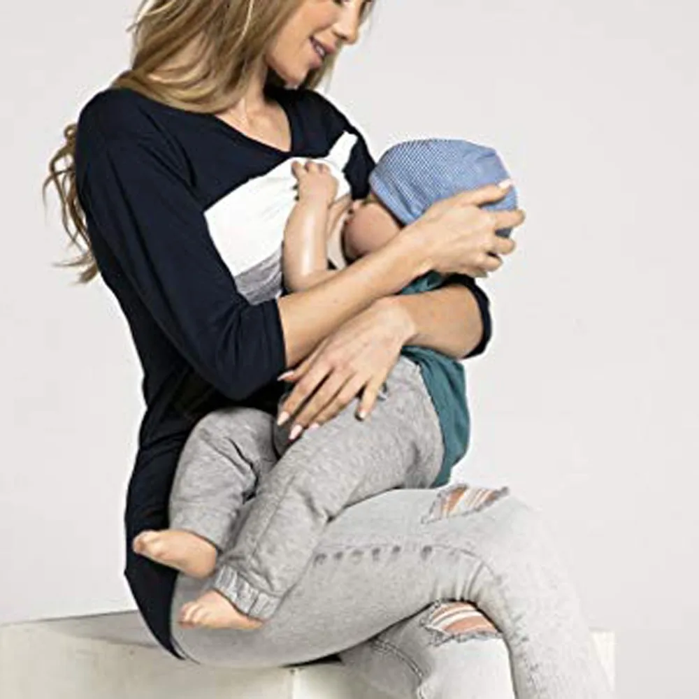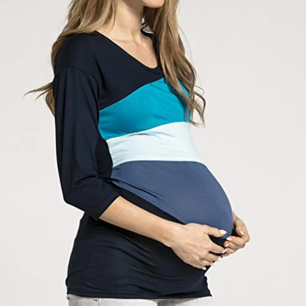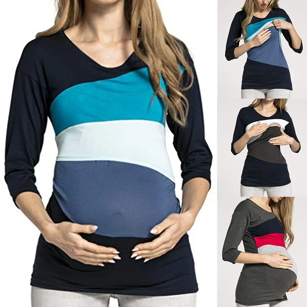 Women’s Maternity Nursing Wrap Top Color Block Double Layer Blouse T Shirt