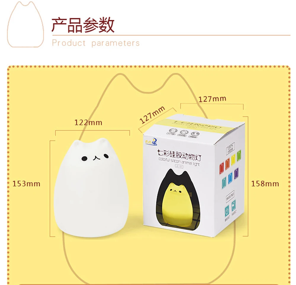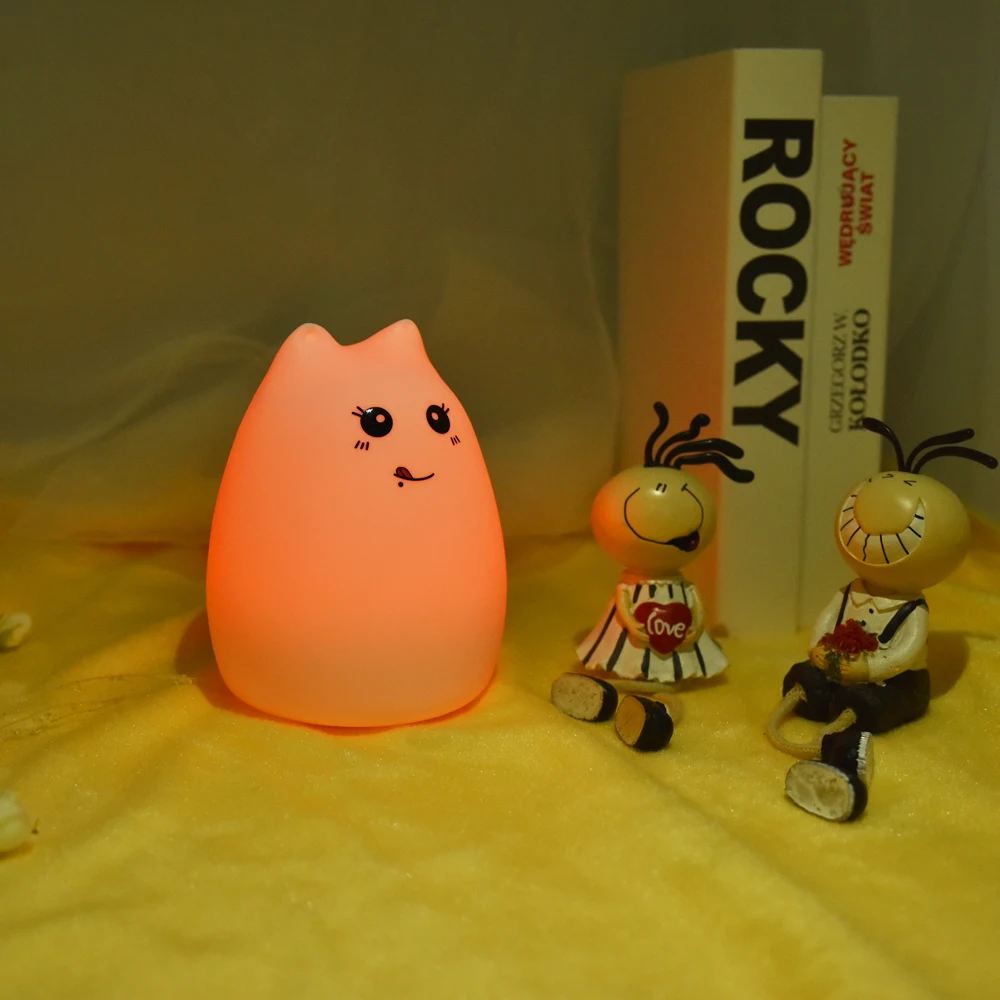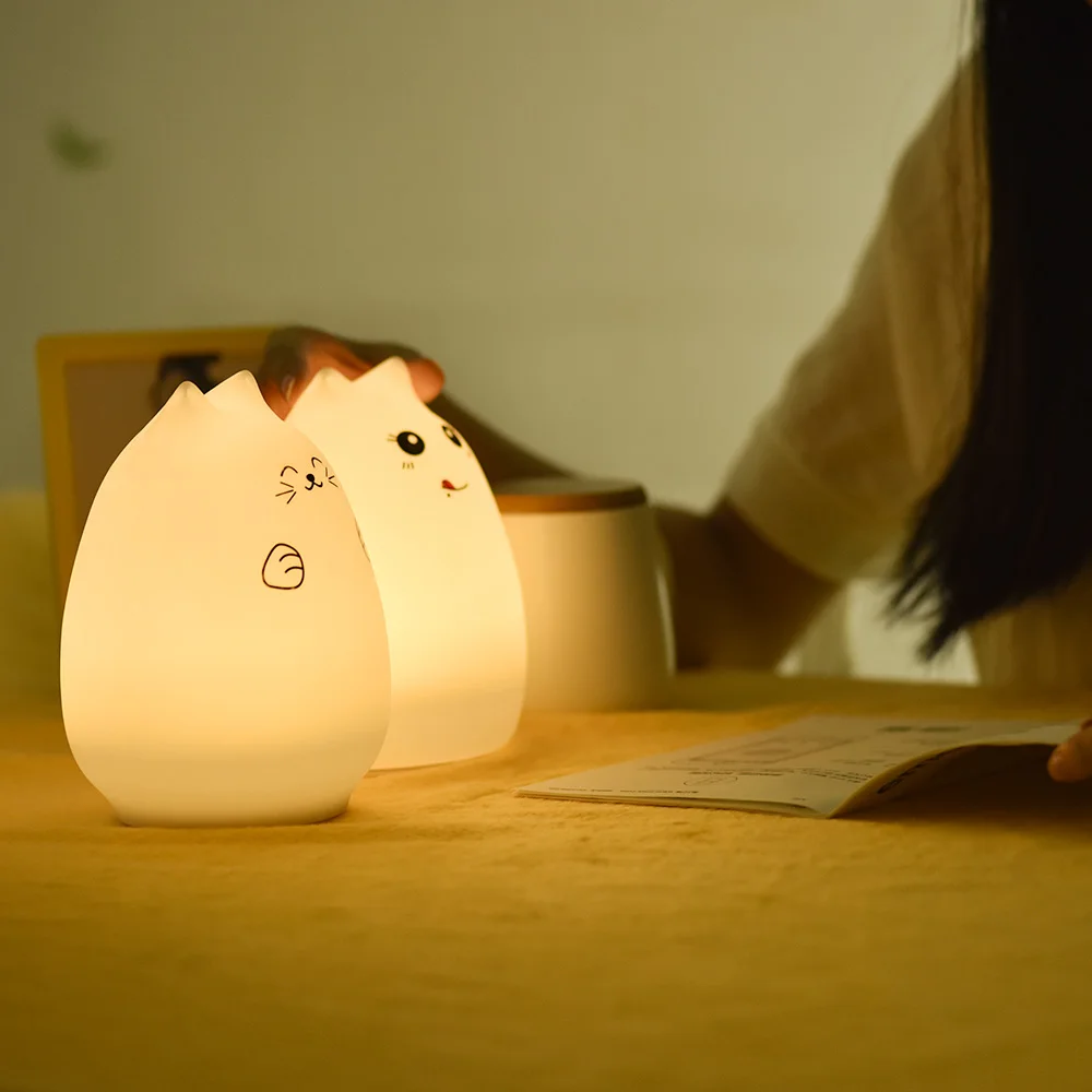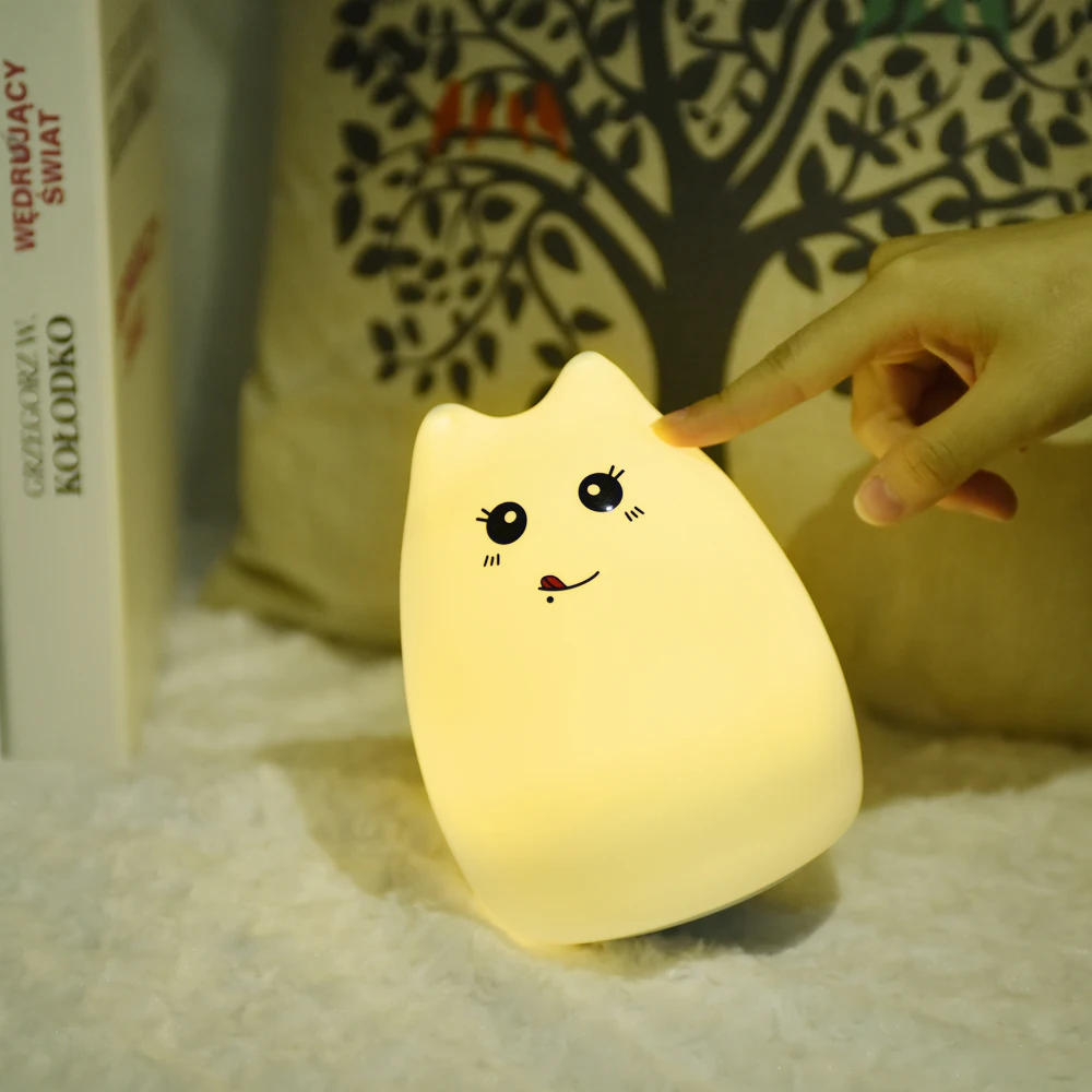 Premium 7 Colors Cat LED Night Light USB Children Silicone Soft Cartoon Baby Touch Sensor Lamp Breathing Bedside Table Lamp