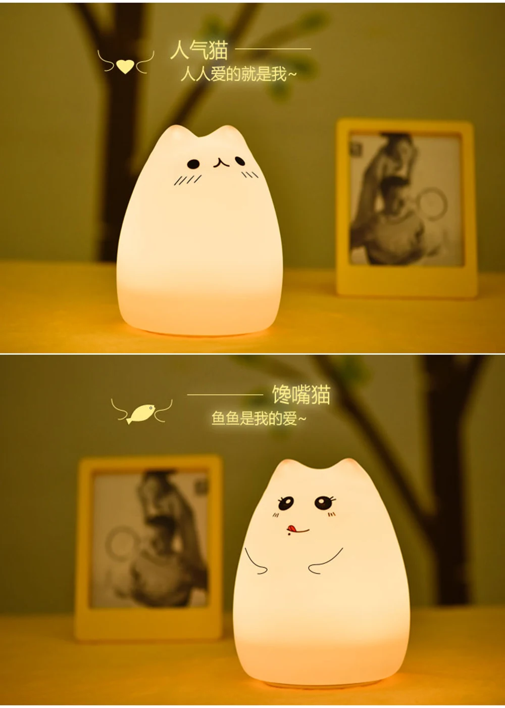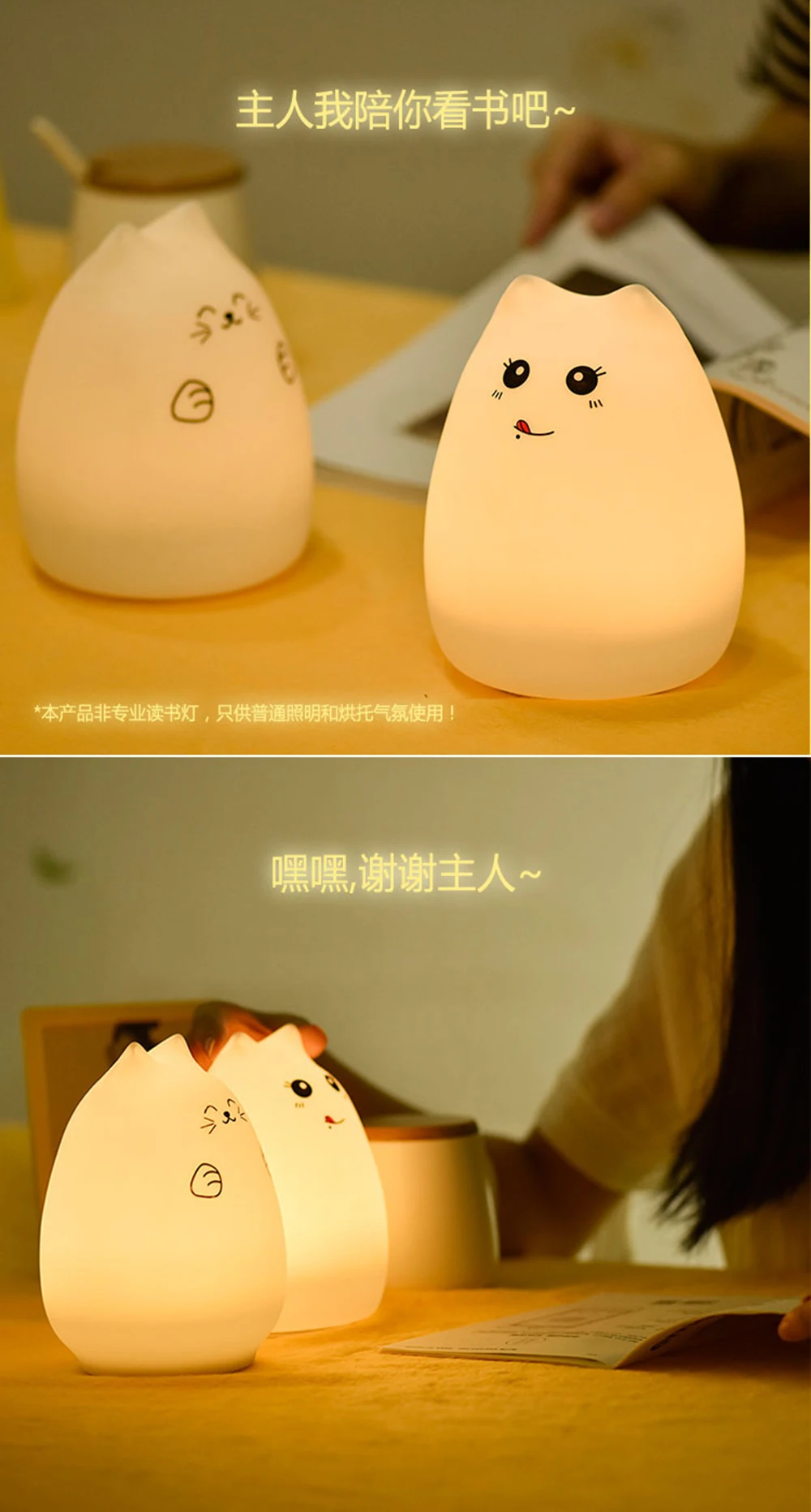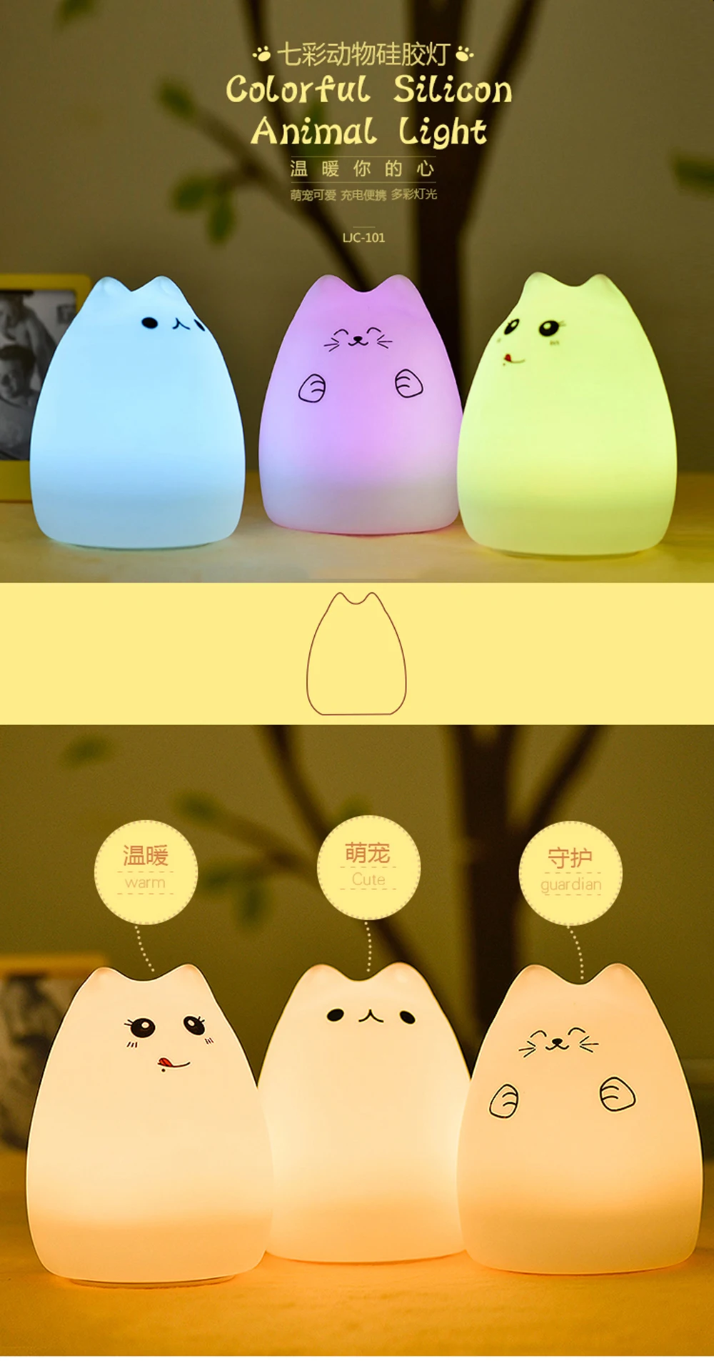 Premium 7 Colors Cat LED Night Light USB Children Silicone Soft Cartoon Baby Touch Sensor Lamp Breathing Bedside Table Lamp