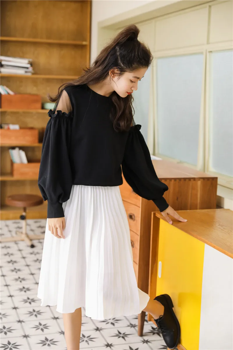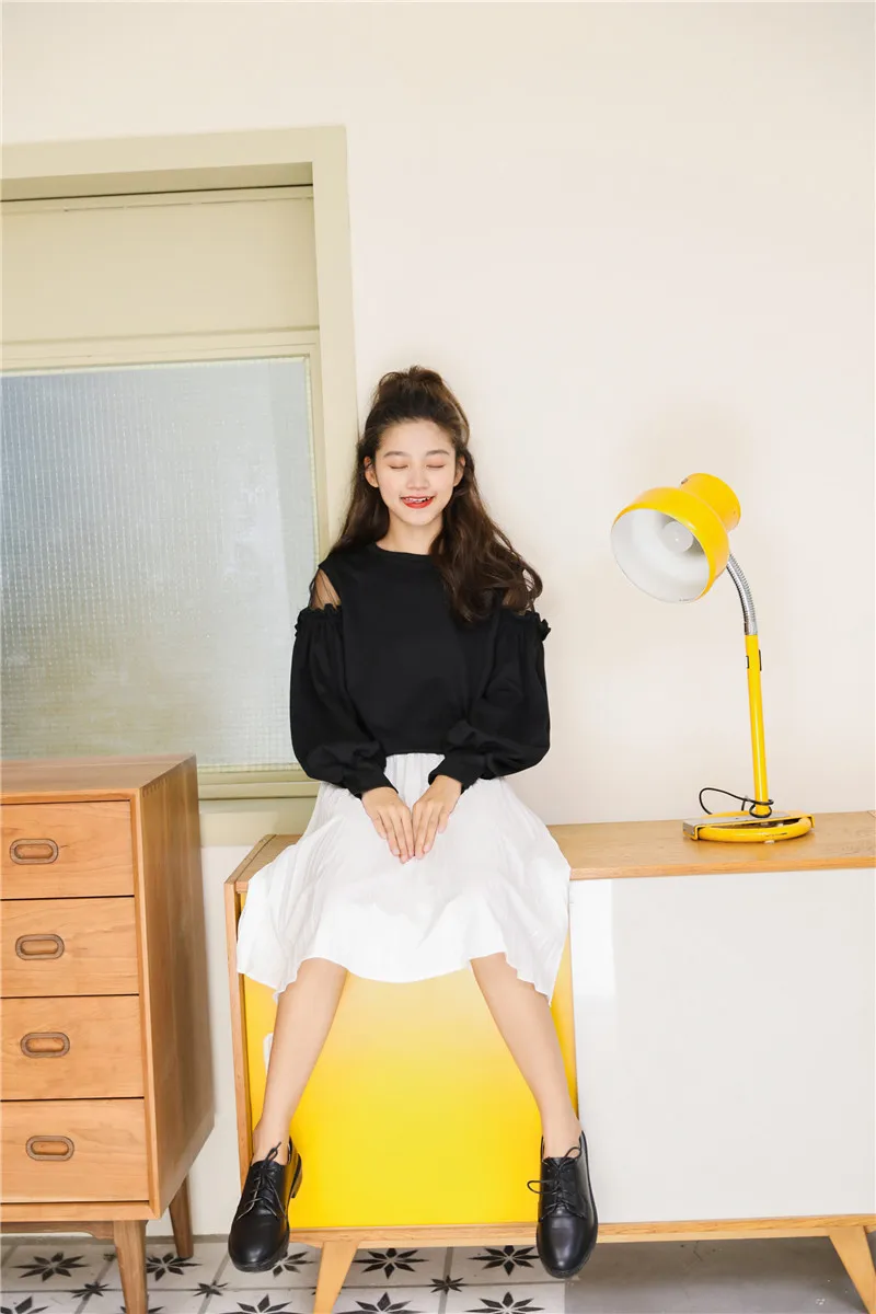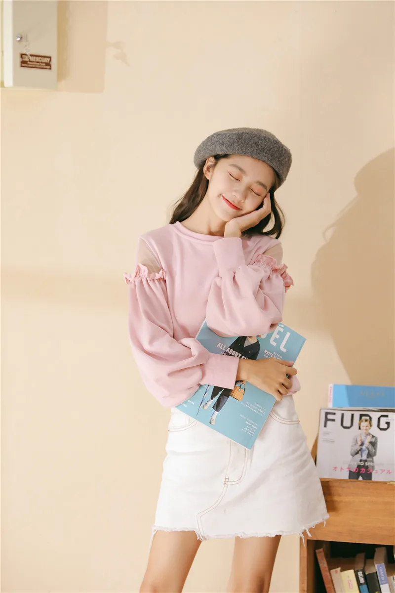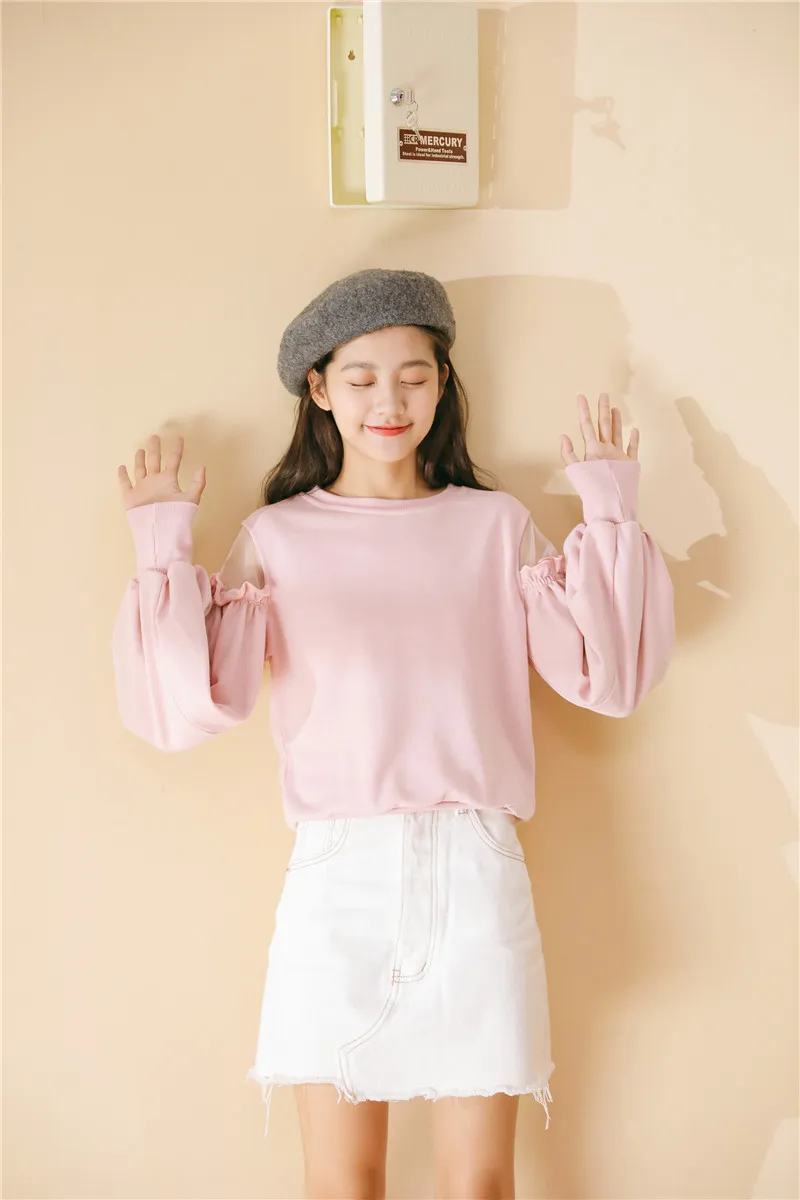 Preppy Style Oversized Black Pink Kpop Sweatshirt Womens Clothing Autumn Harajuku Kawaii Loose Patchwork Sweatshirt Tops Women
