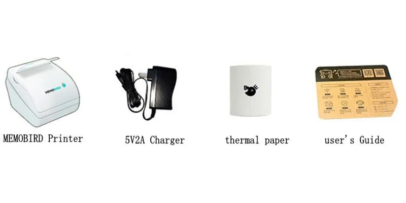 Packing Contents: 1 x MEMOBIRD WiFi Printer, 1 x Printer Paper, 1 x USB Cable