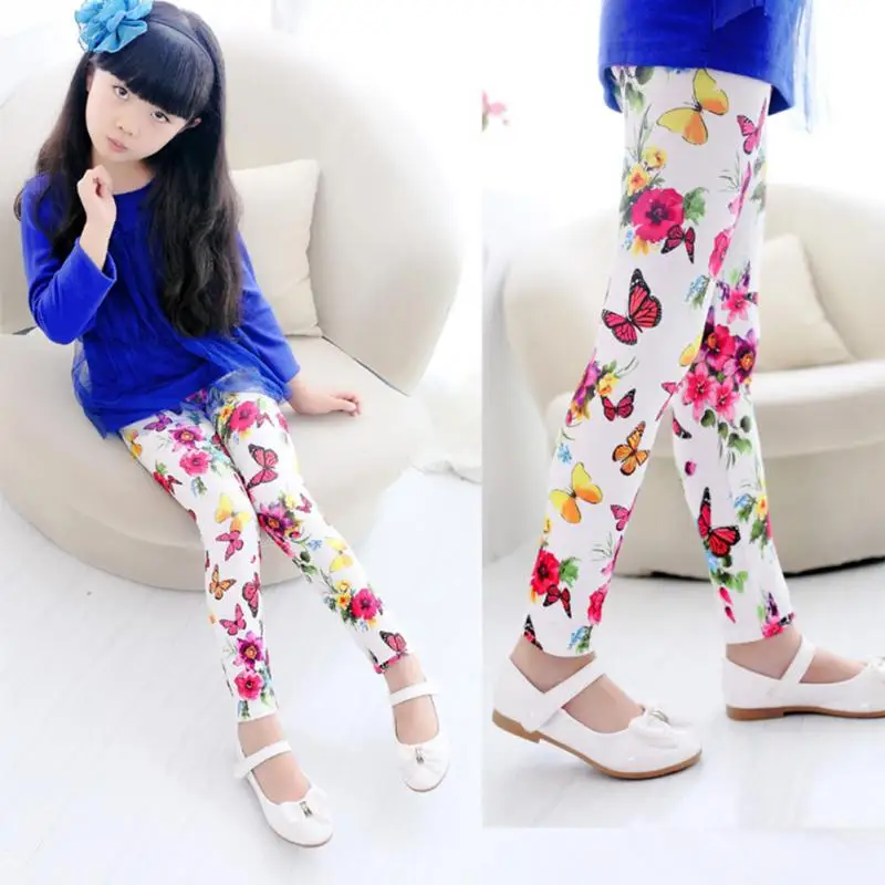 Printing Flower Girls Leggings Toddler Classic Leggings 2-14Y baby Girls Leggings Kids Leggings