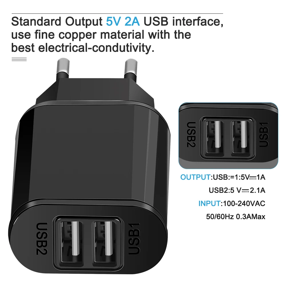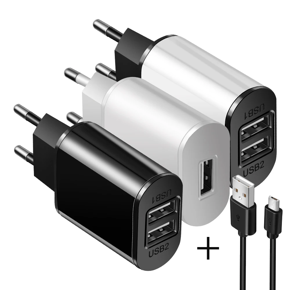 Proelio Dual USB Charger 5V 2A Fast Mobile Phone Charger Adapter For iphone X 8 7 Plus Samsung Xiaomi Micro USB Cable