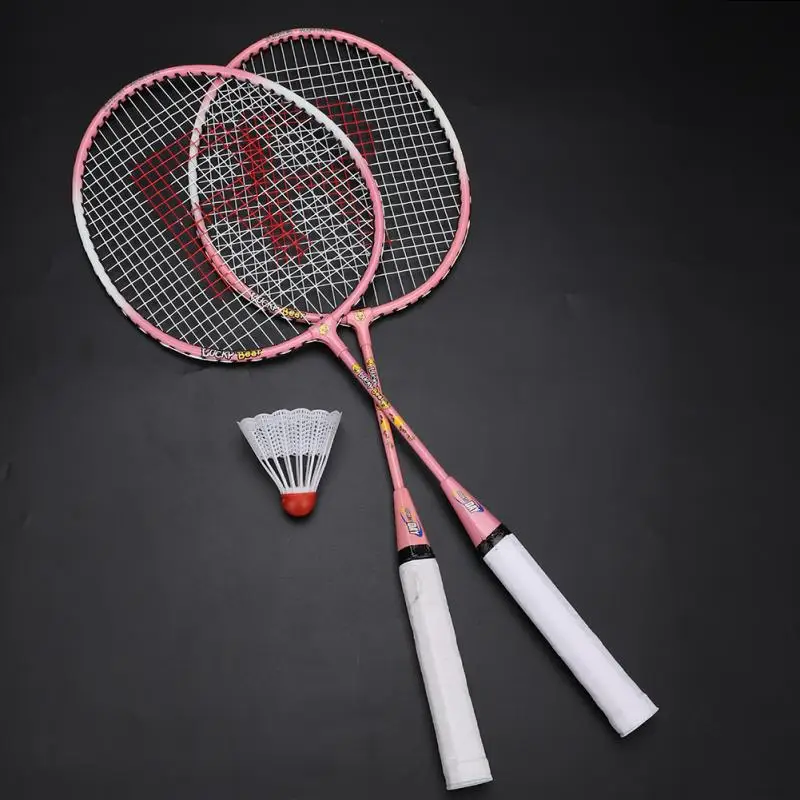 2Colors Kids Teenager Cartoon Badminton Racket Durable Ferroalloy Light-weight Badminton Racket Racquet for Training Practice