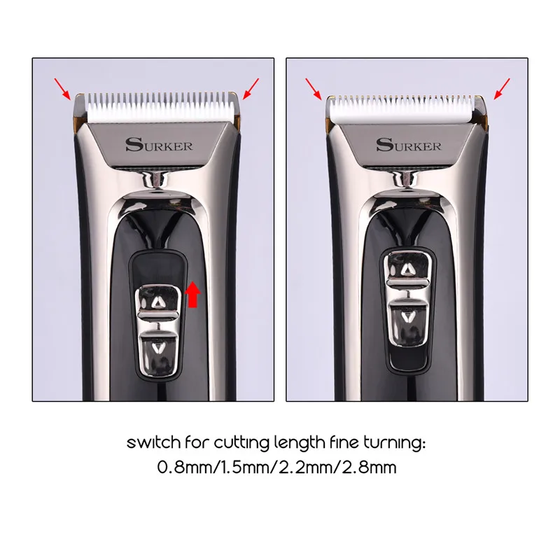 Adjustable cutting length blade switch for fine tuning from 0.8mm-1.5mm-2.2mm-2.8mm, which can create different hair styles.