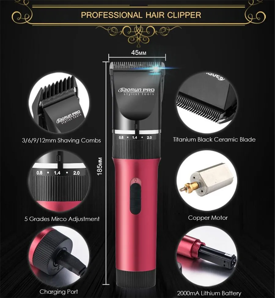 Professional hair trimmer 2000mA lithium battery titanium ceramic blade