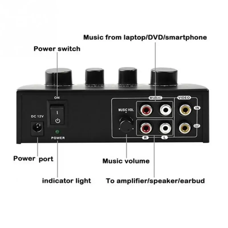 Professional Kara OK Dual Microphone Input Mixer Black (US 110-240V) Hot