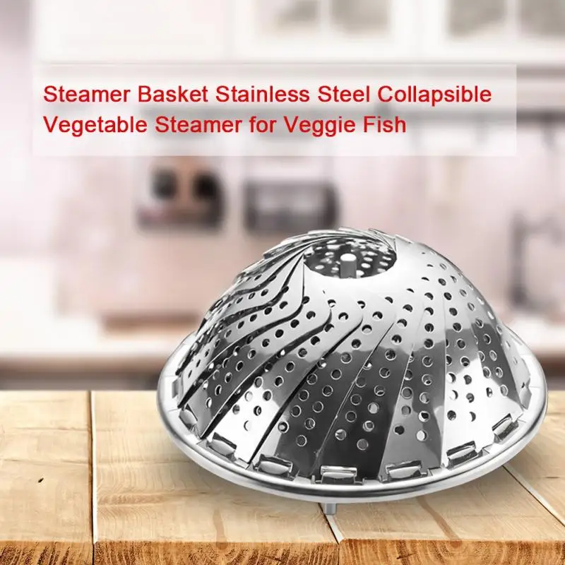 Professional Mesh Kitchen Food Collapsible Folding Stainless Steel Steamer Basket Vegetable