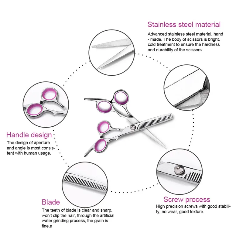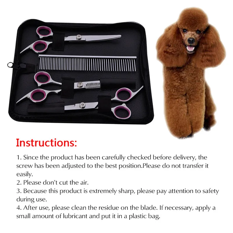 Professional Pet Dog Grooming Scissors 6.0 inch Hair Cutting + Thinning + Curved Shears 4CR Straight Scissors 4 PCS Set + Bag