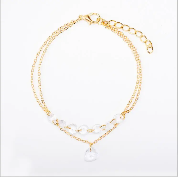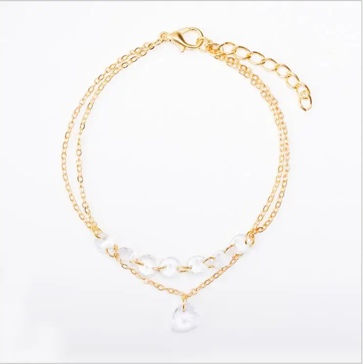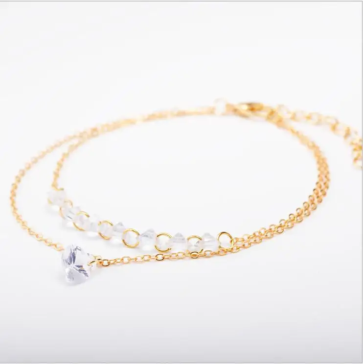 Promotion Luxurious Dainty Bling Two Layers Heart Zircon Crystal Bracelets Women hand chain Mujeres Bijoux Jewelry Gift B3004