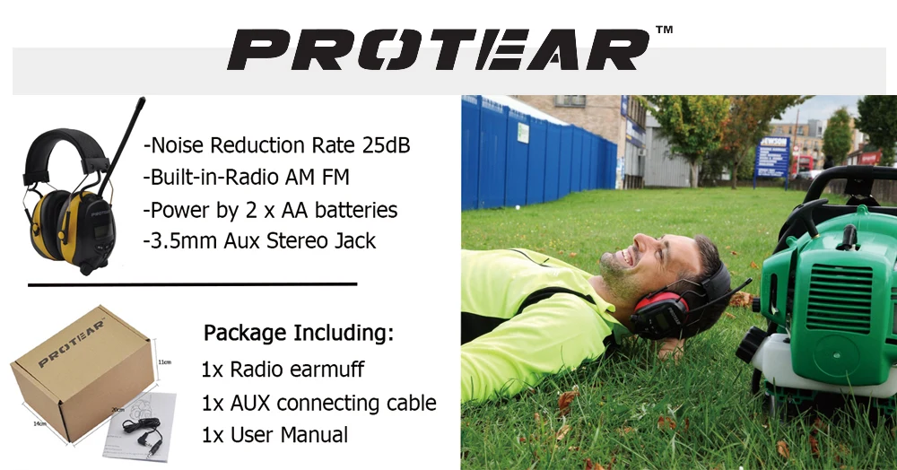 Protear NRR 25dB Hearing Protector AM FM Radio Earmuffs Electronic Ear Protection Radio Hearing Protection