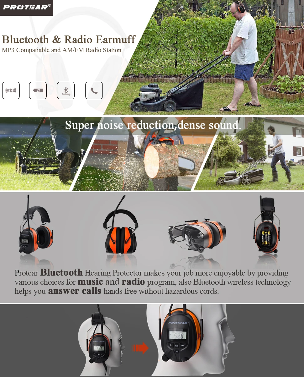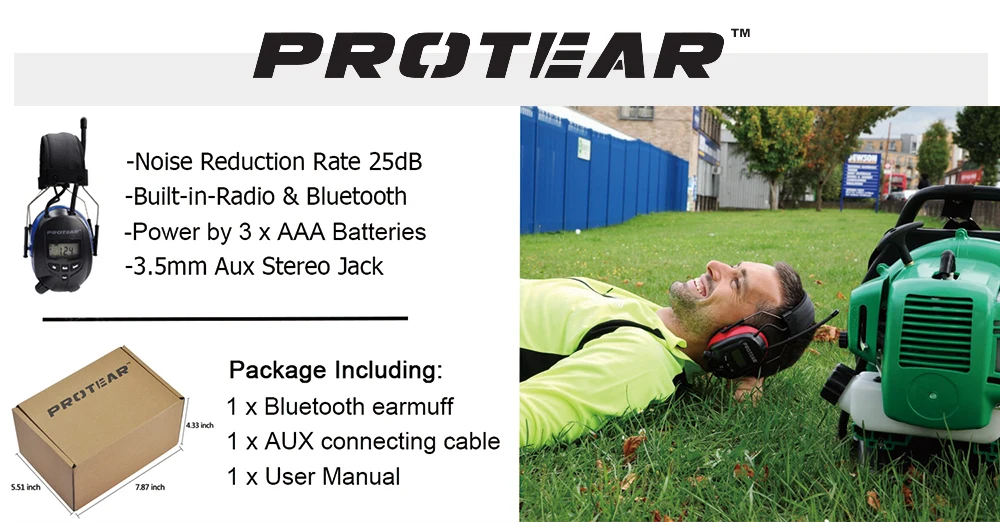 Protear NRR 25dB Hearing Protector Blue tooth AM/FM Radio Earmuffs Electronic Ear Protection Bluetooth Headphone Ear Defender
