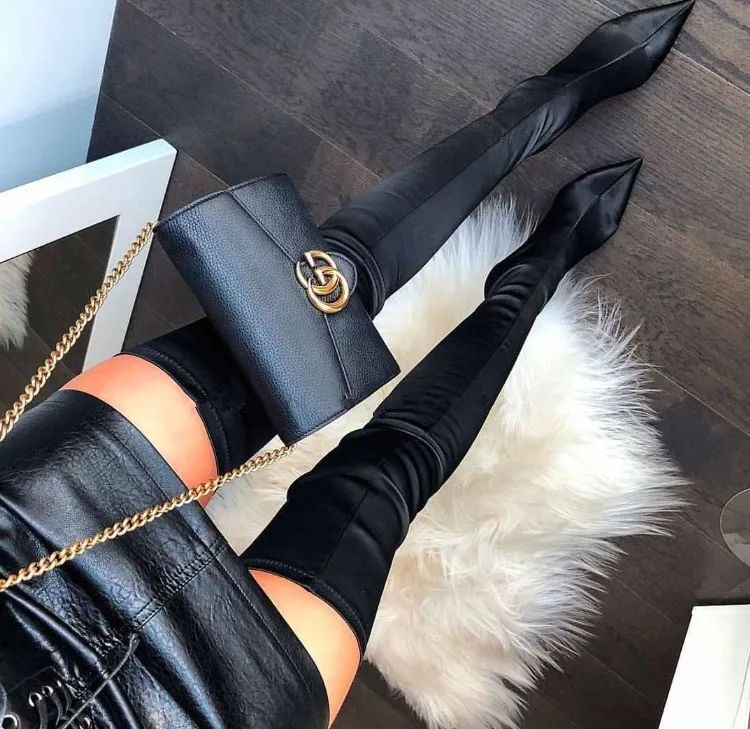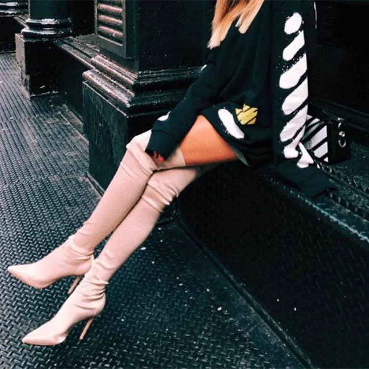 Prova Perfetto Sexy Over The Knee Sock Boots Fashion Woman Point Toe Sewing Stiletto Botas Comfort Slip On Women Elastic Boots