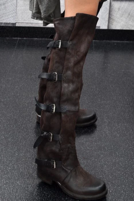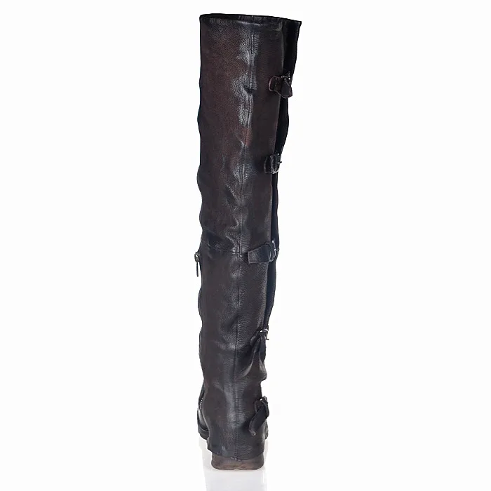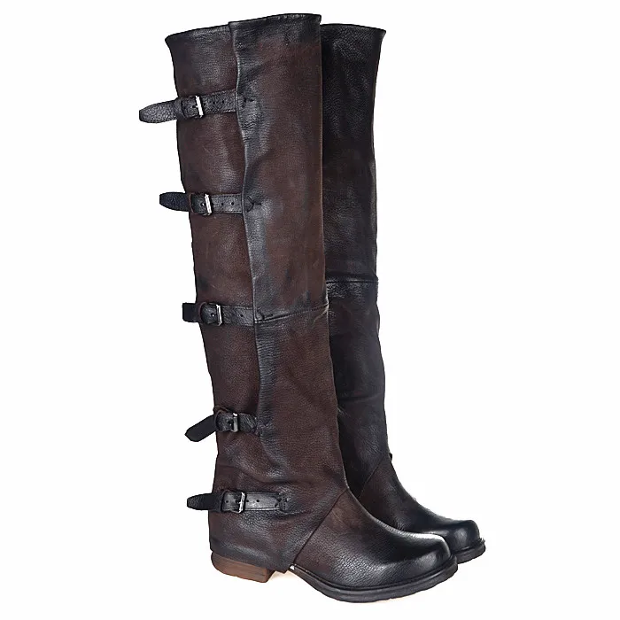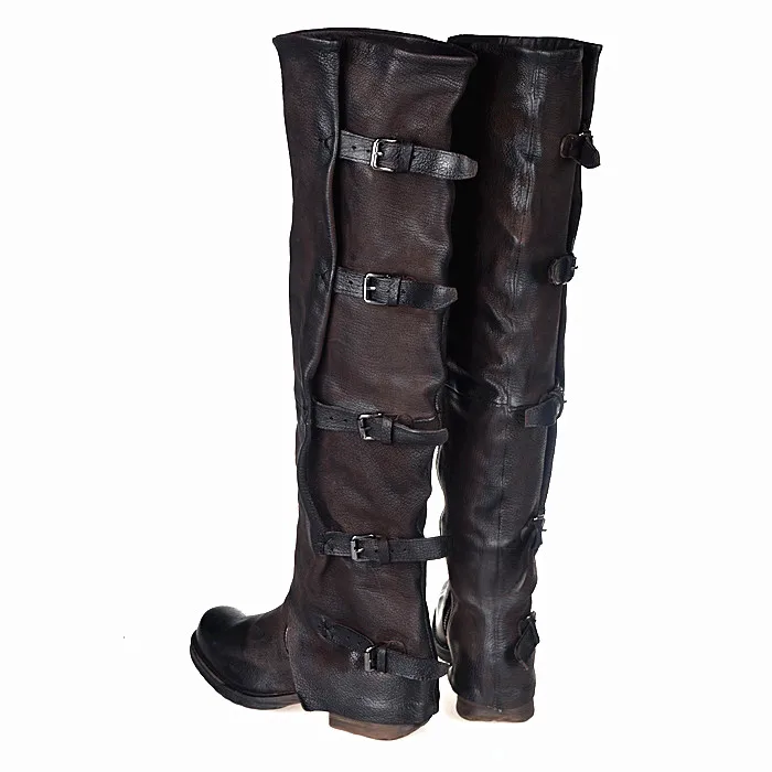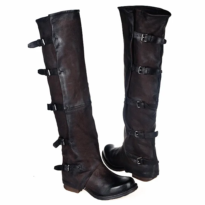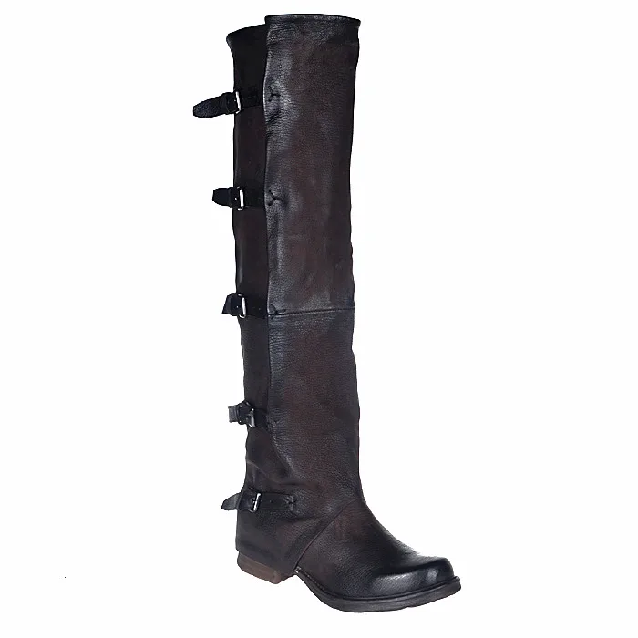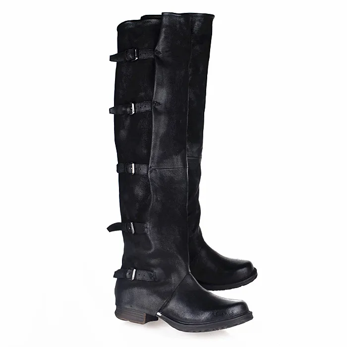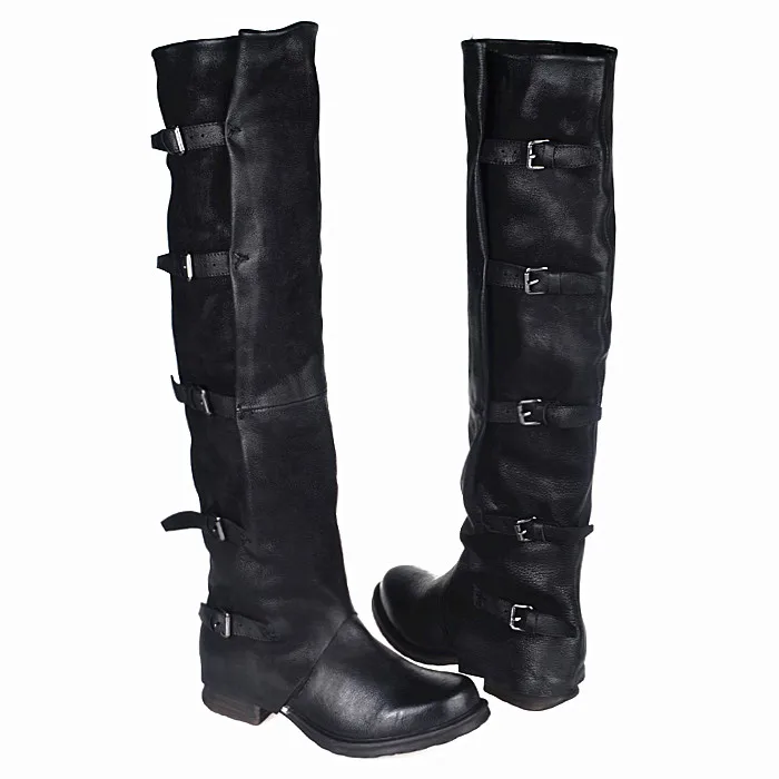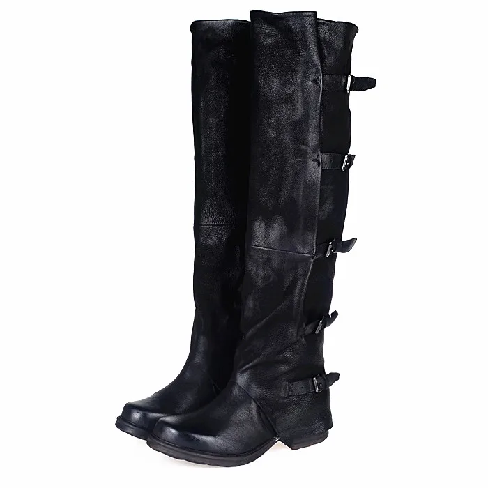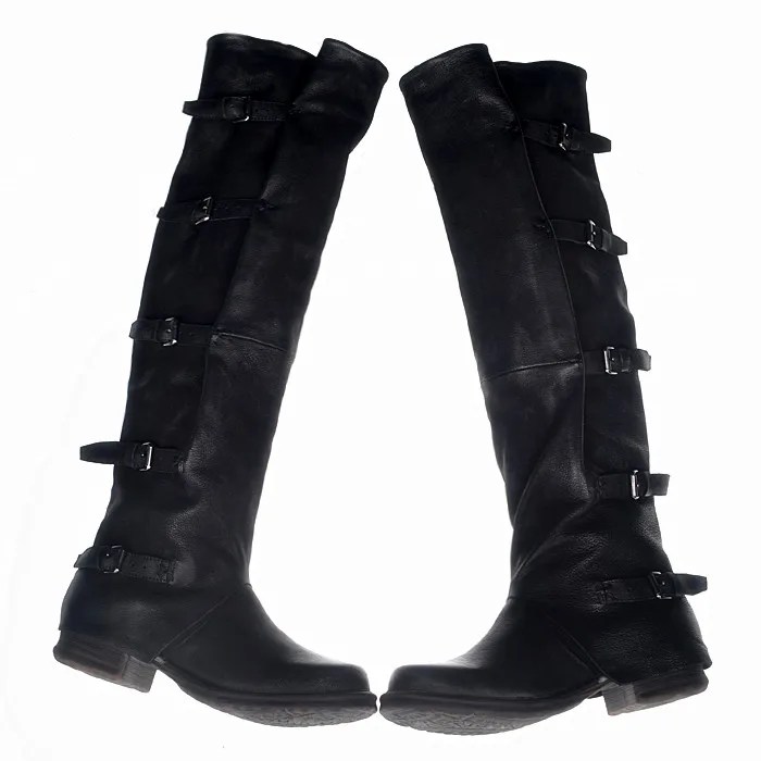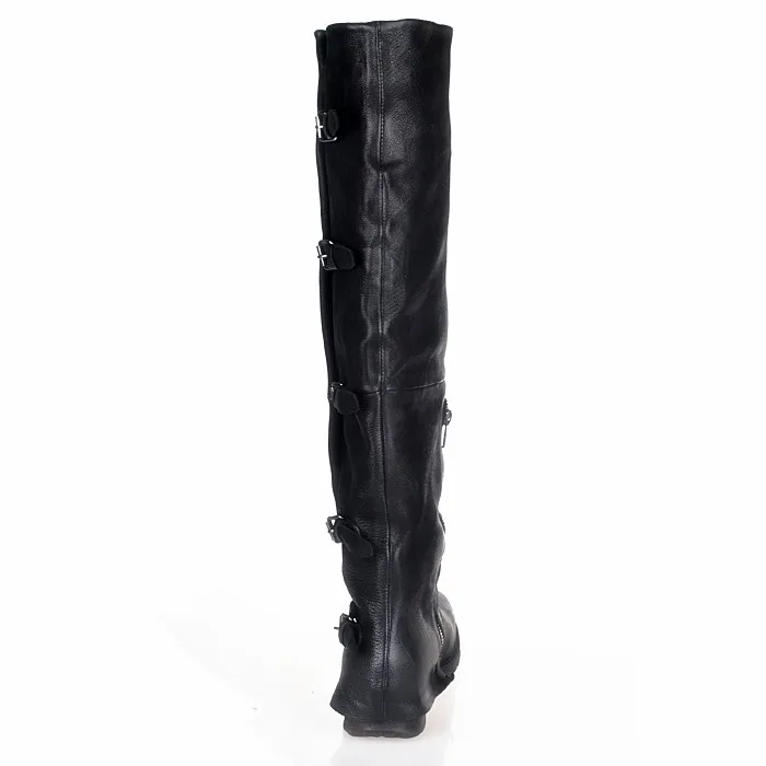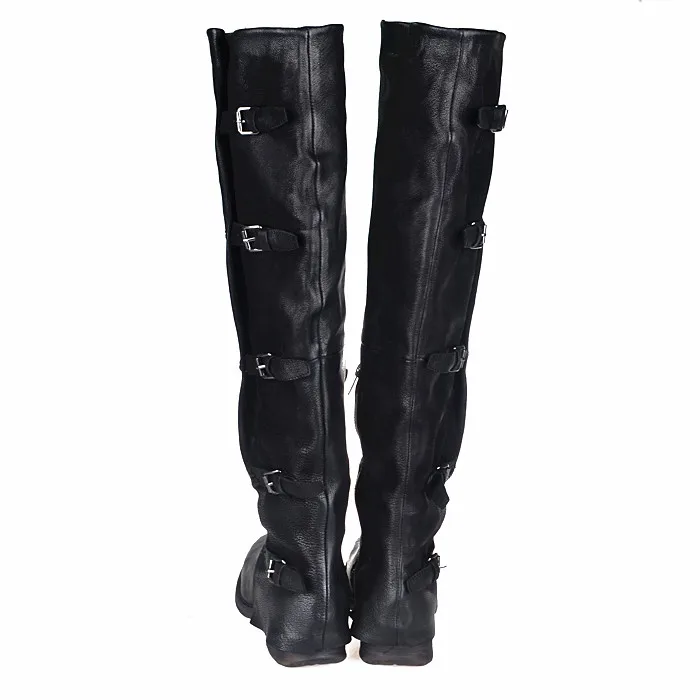 Prova Perfetto Concisc Winter Solid Over The Knee Shoes Women Sheepskin European Boots Belt Buckle Design Fashion Thin Boot