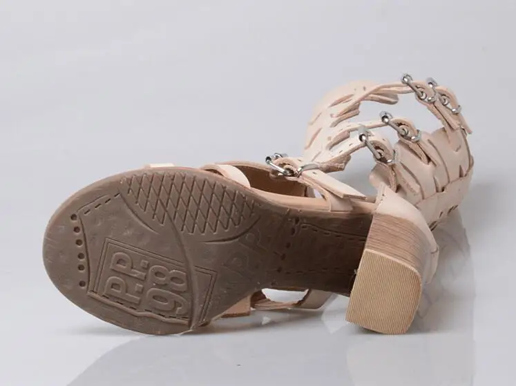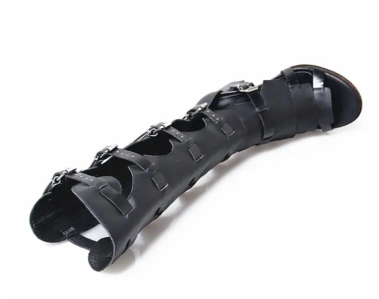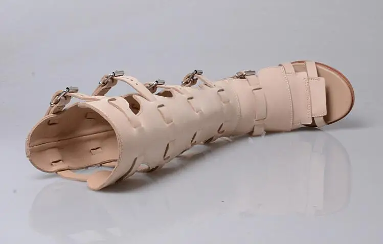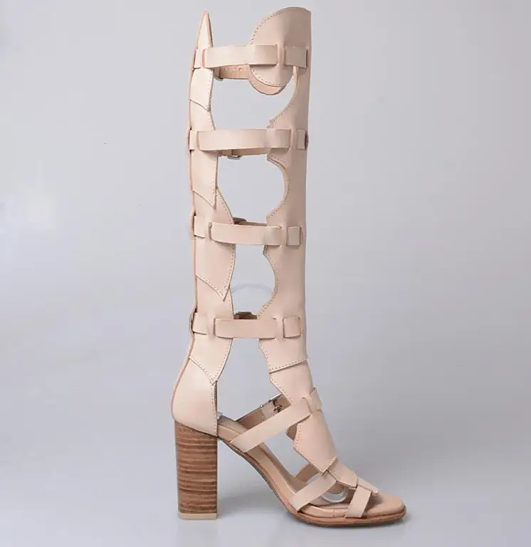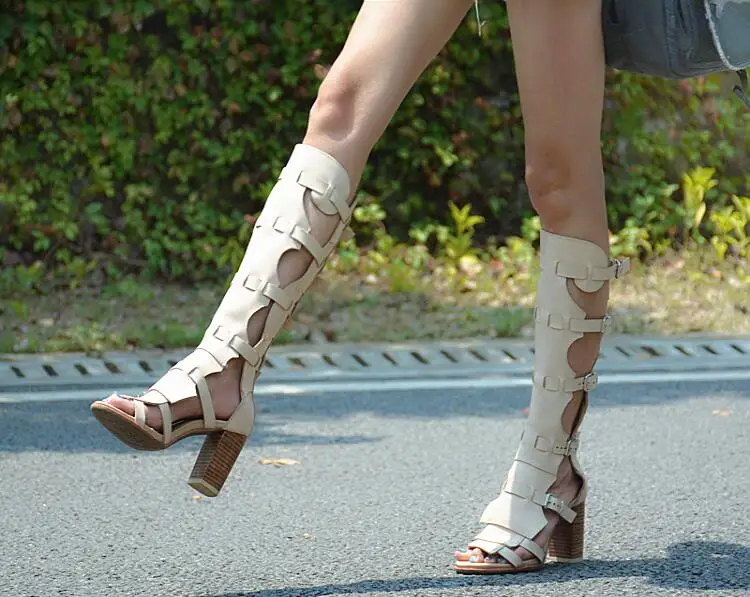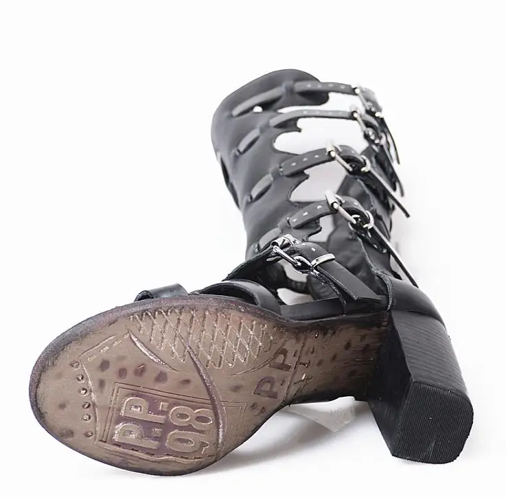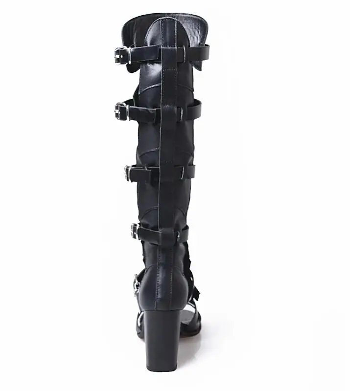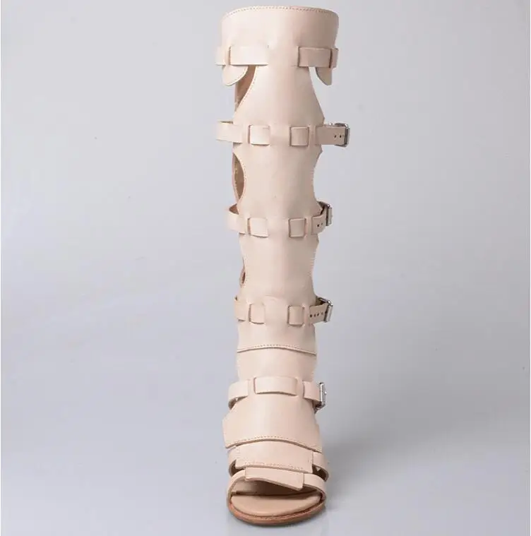 Prova Perfetto Fashion Sexy Ladies Knee High Boots Sandals Hollow Out Buckle Belt Square High Heel Women’s Gladiator Sandals Boots