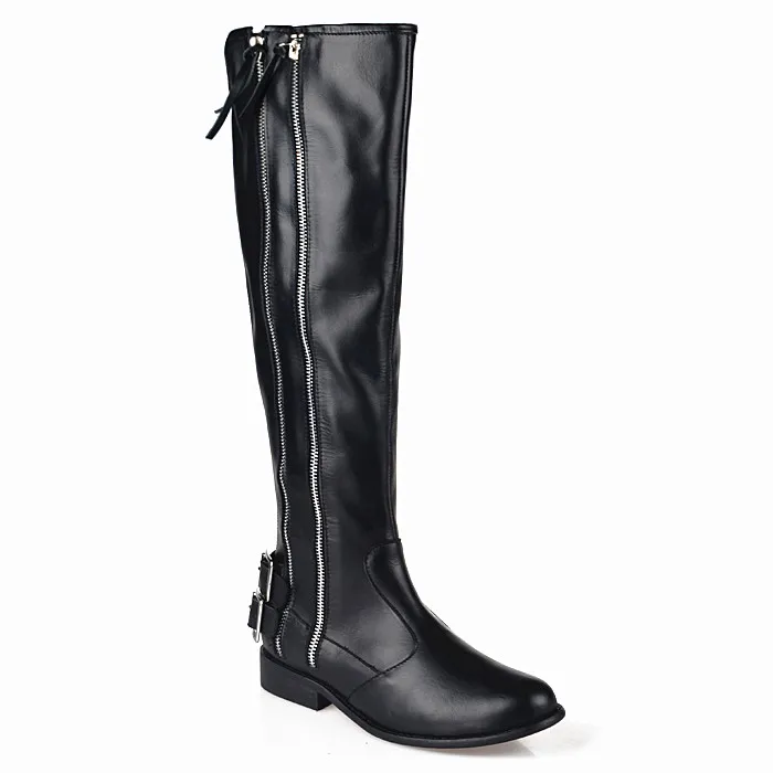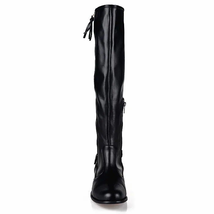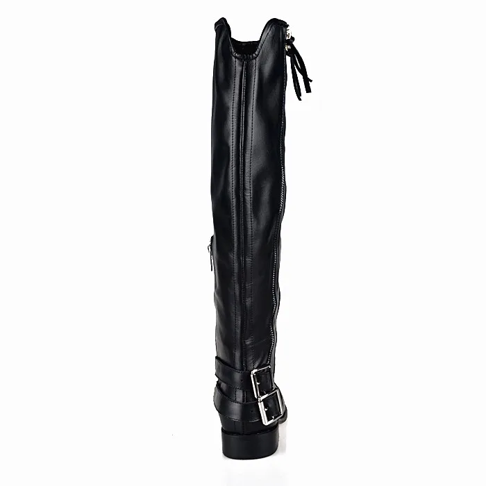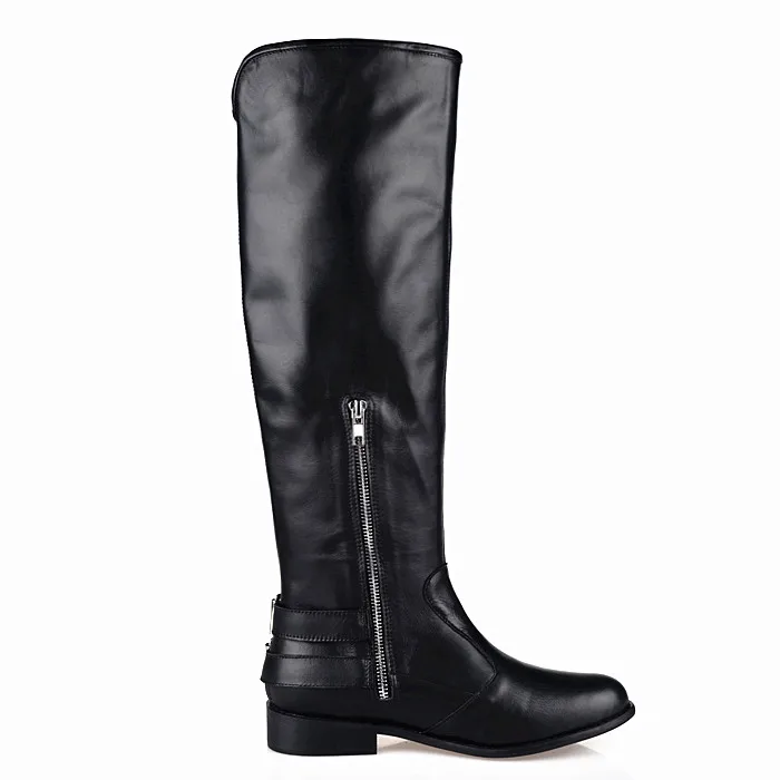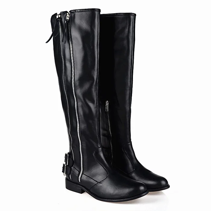 Prova Perfetto Fashion Show Full Cow leather Knee Boots Women Low Heels Winter Flush In Shoes Dubule Zipper Design Ladies shoe