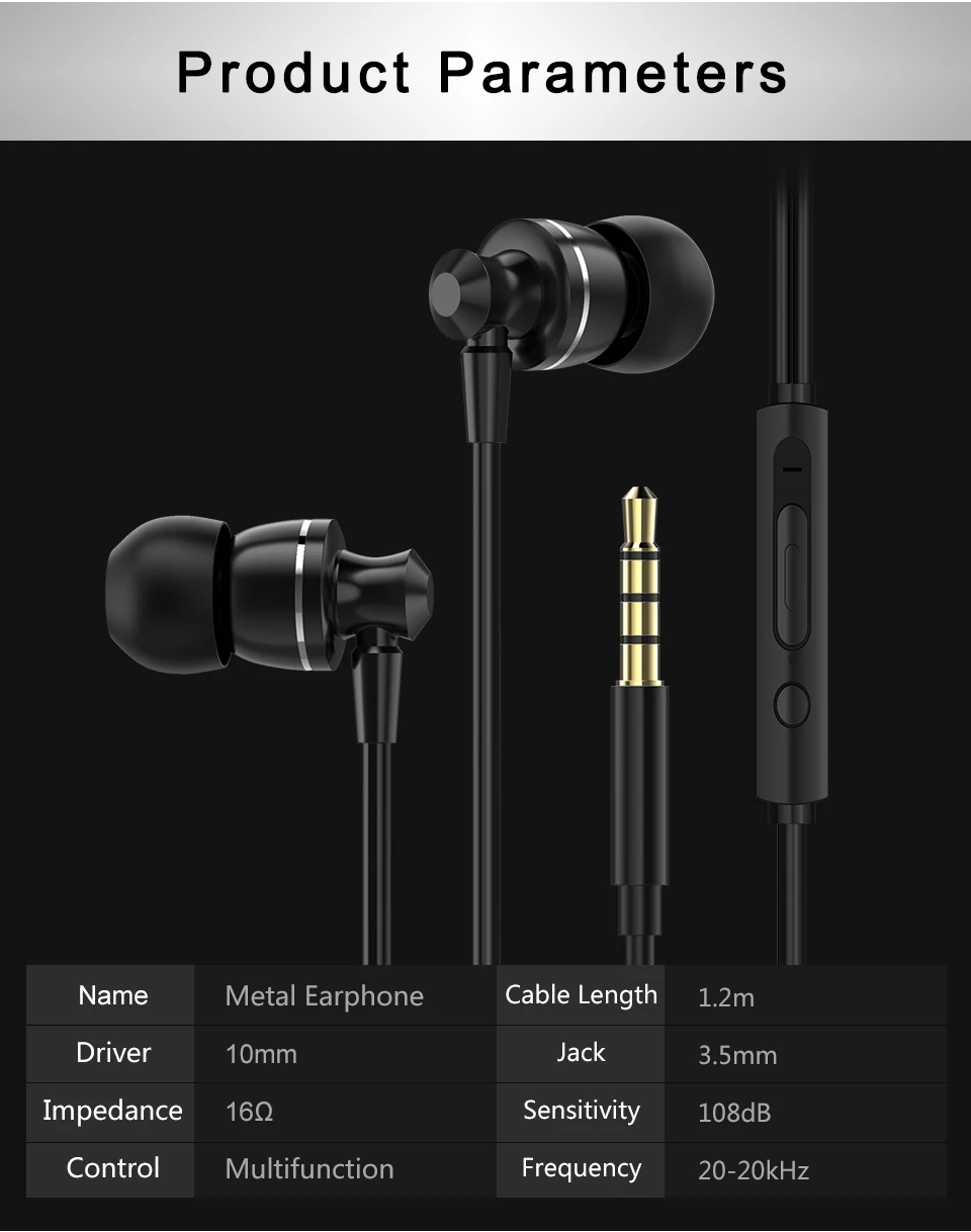 PTM D11 In-ear Super Bass Earphone With Mic Volume Control Metal Headset for Phones Iphone Xiaomi Samsung MP3 fone de ouvido
