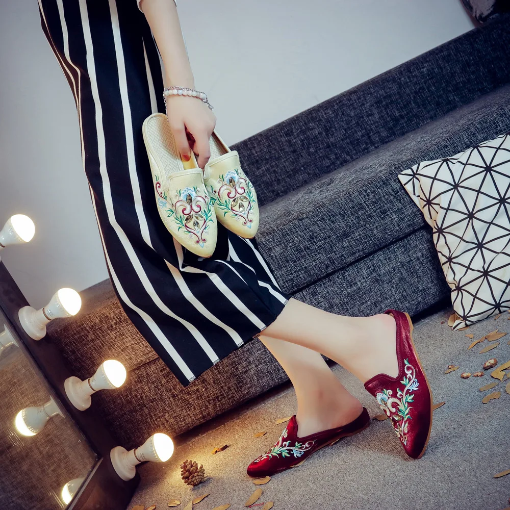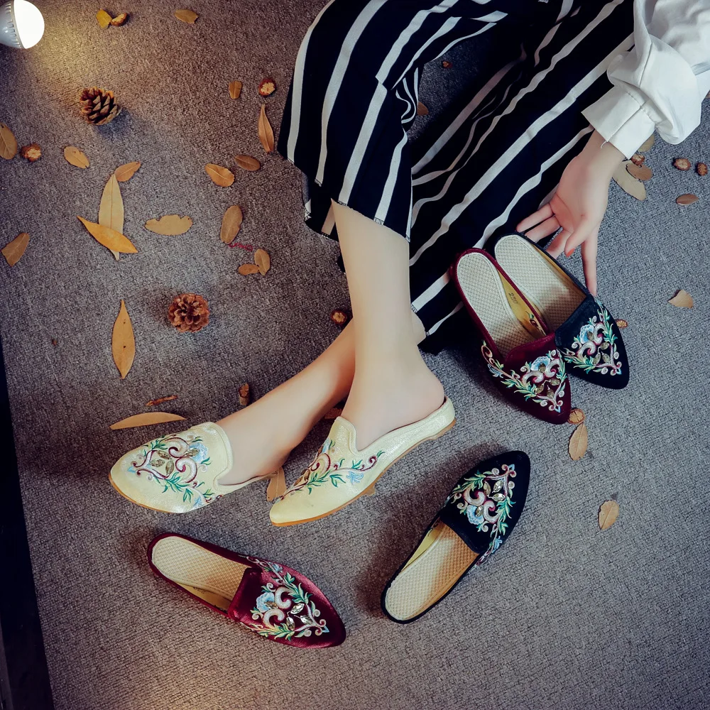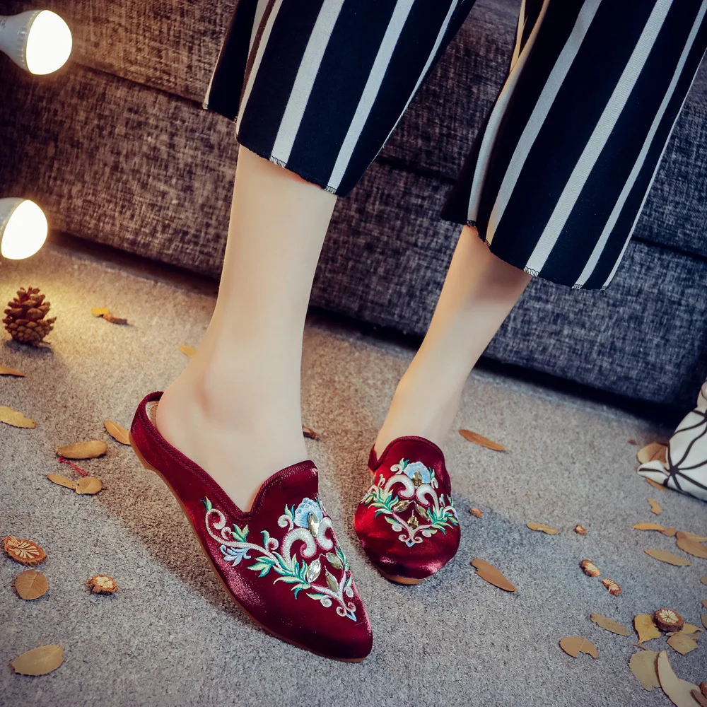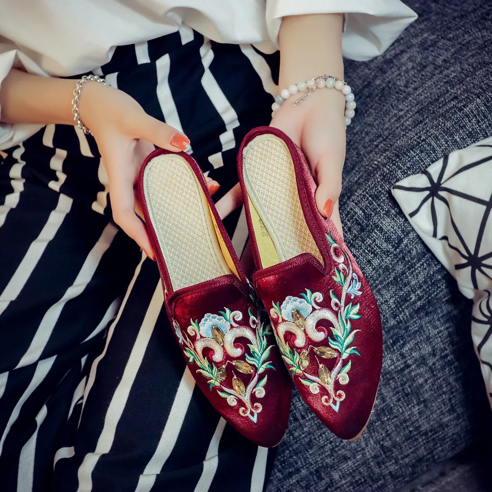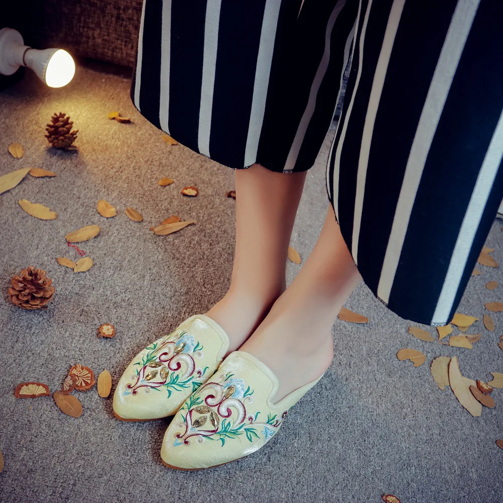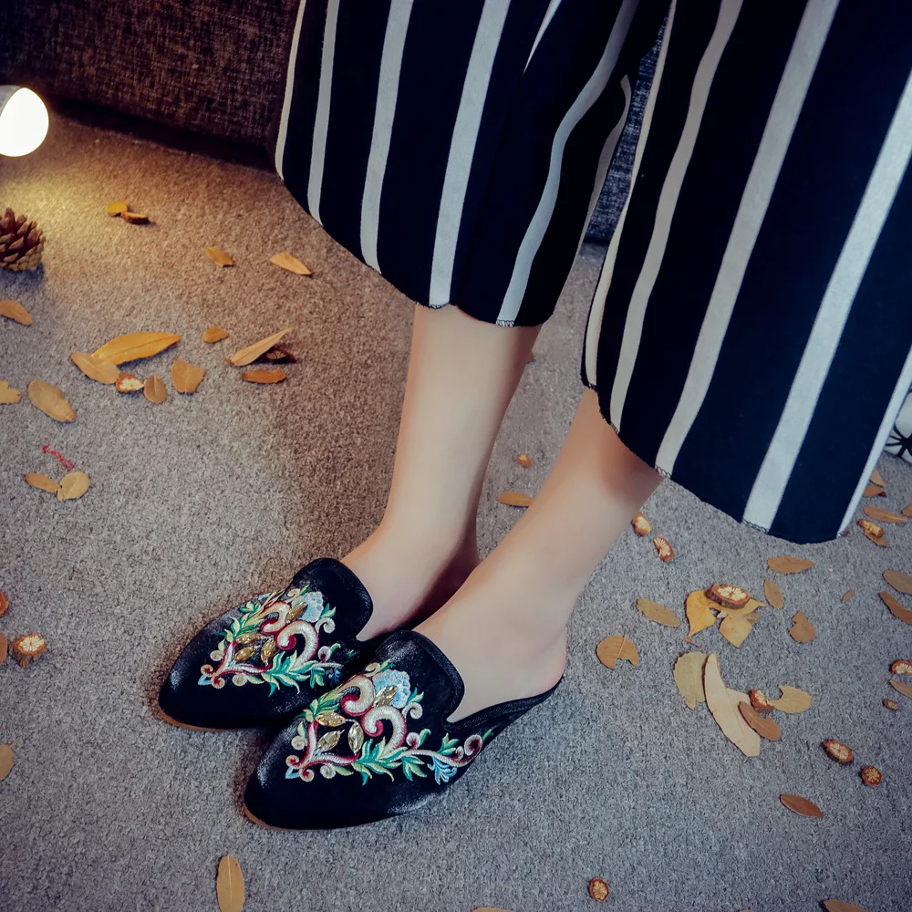 pumps women shoes big size 35-43 Muller shoes dress shoes rhinestones high-end satin summer indoor slippers sandals slippers