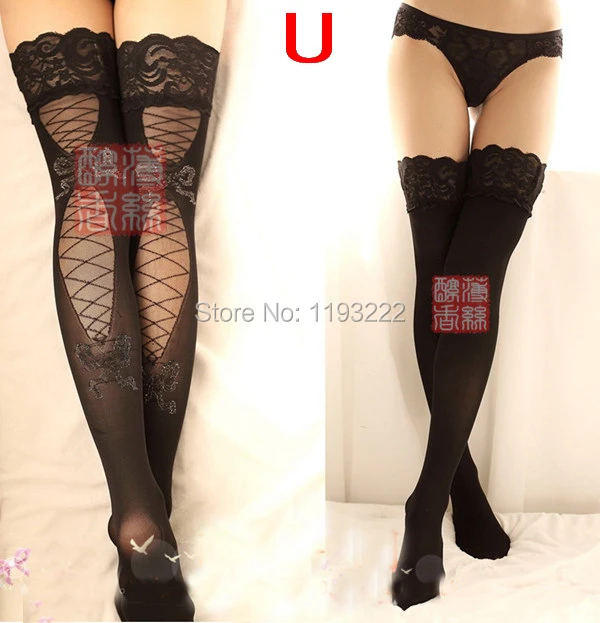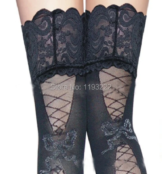 Punk Gothic Wedding Cosplay Wide Lace Silicone Hold UP Floral Top Thigh high Back Sheer Bandage Bow Long Stockings