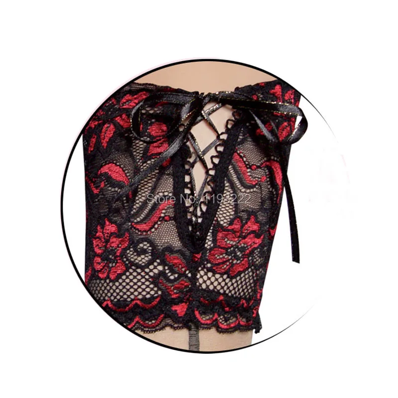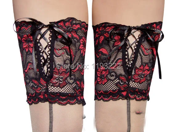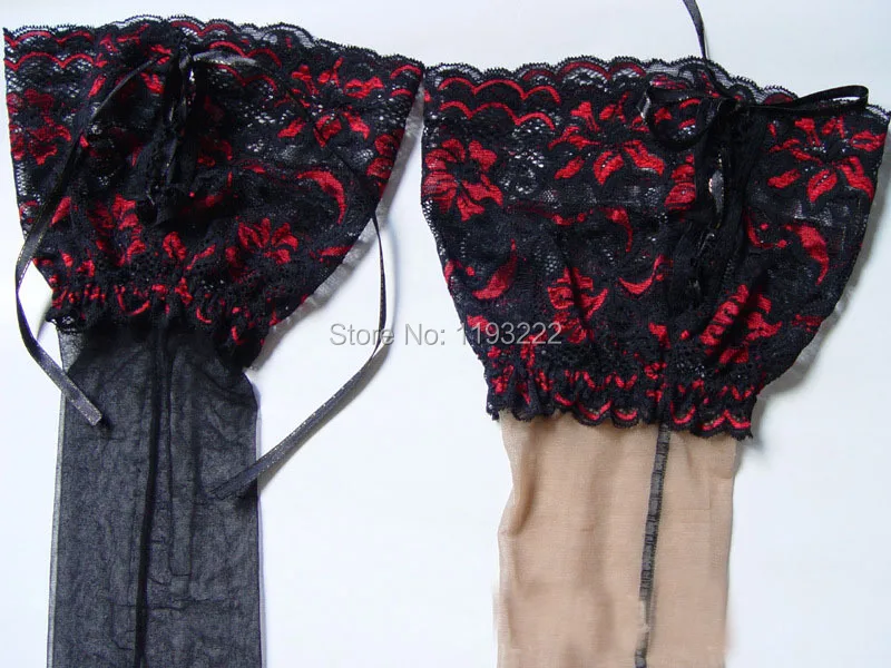 Punk Maid Sexy Cuban Heel Back Seam Stockings Wide Lace UP Hold Up Silicone 16cm Floral Top Thigh High Cross Bandage Stockings