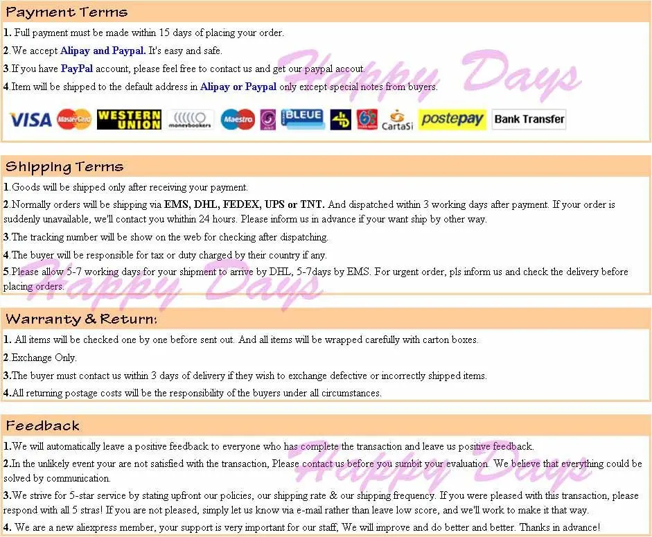 • If you did not receive the product within the guaranteed time( 45 days not including 2-5 day processing) you can request a refund or a reshipment.